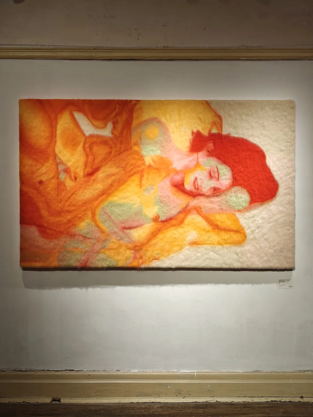 🧶正如标题中的Oxymoron意为矛盾修辞法,艺术家以羊毛纤维为创作媒介,其材质看似甜美柔软,却在针戳羊毛毡的制作过程中暗藏暴力痕迹,借此揭示平静美好表象下的冲突与斗争。