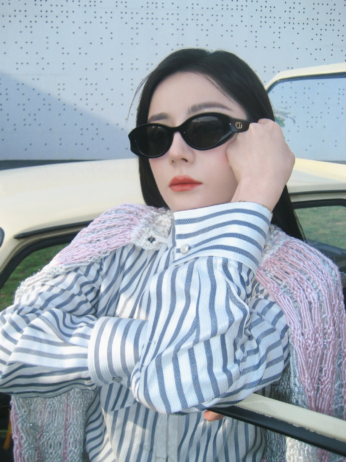 申请坐迪丽热巴的副驾迪丽热巴条纹衬衫针织披肩 迪丽热巴条纹衬衫针织披肩,申请坐迪