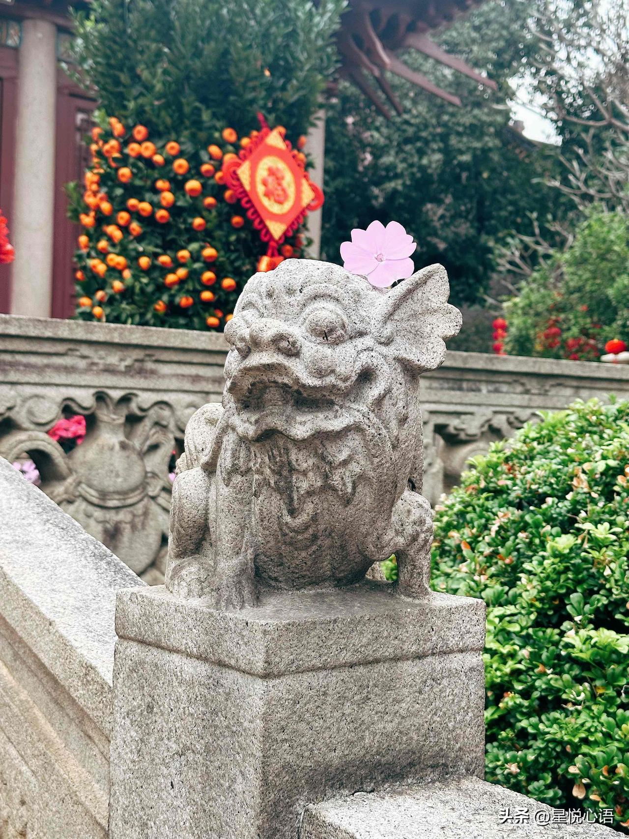 在广州拍到小狮子戴木棉花,可可爱爱 广州农讲所的春日美好,木棉花开得正盛, 红墙黄瓦配着火红的花,一眼看去超有氛围感。 把刚掉的木棉花,顺手放在小石狮头上, 瞬间萌翻了。 严肃的小石狮子,顶着一朵红棉, 反差感拉满,路过的大叔都直说好得意。 木棉花还是广州市花,老广都叫它英雄花。 落下来的花也不浪费, 捡回去晒干能煲汤祛湿,好看又实用。 春日的广州,总能撞见这样的小美好, 简简单单的,却特别治愈人心!