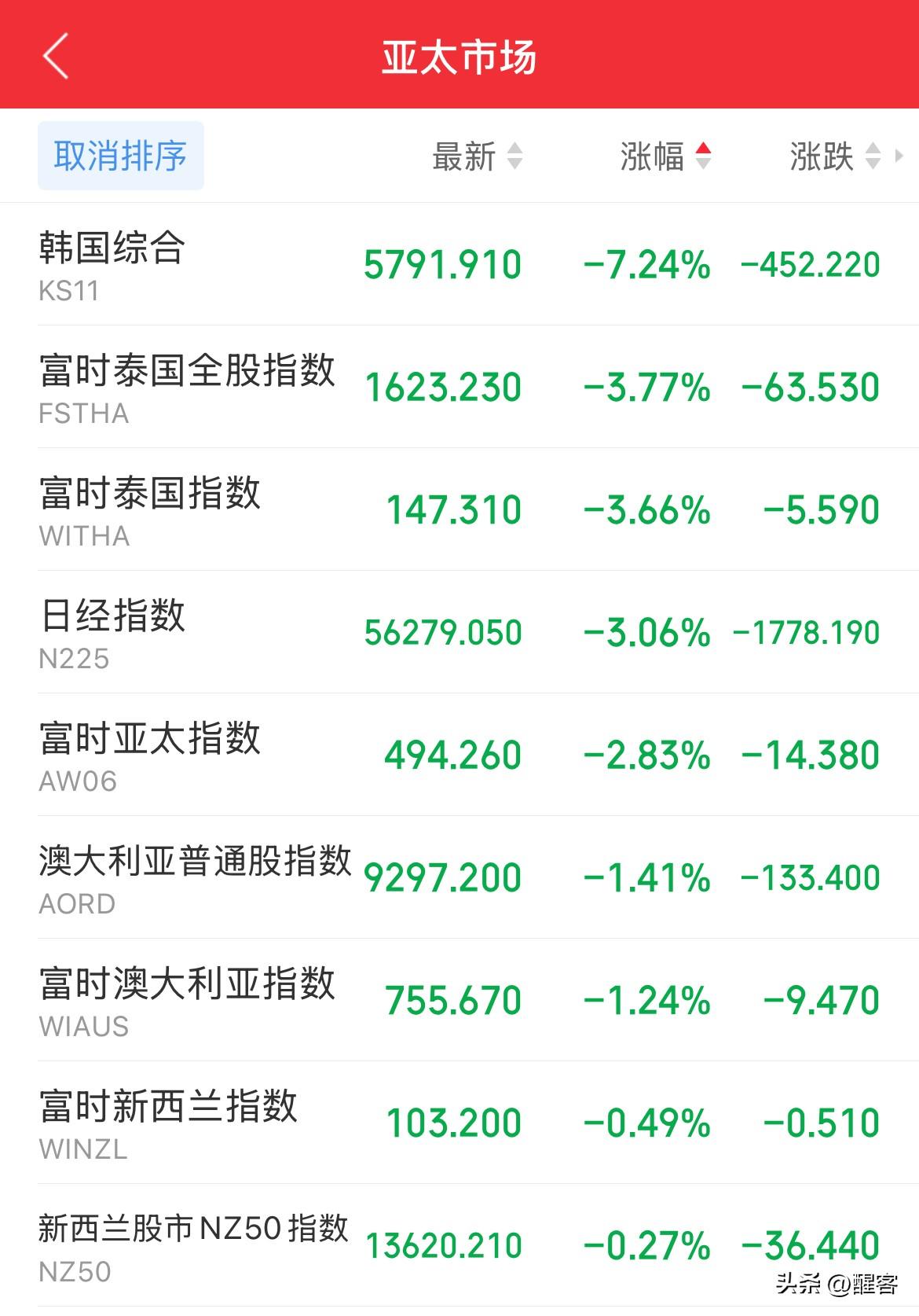 日韩股市暴跌,白银现货跳水,资本市场正在承受来自高位套利盘和霍尔木兹海峡封闭带来的双重风险挑战。 韩国综合指数跌7.24% 日本日经指数跌3.06% 白银现货跳水跌6.13% A股三大指数集体下跌:上证指数跌1.43%、深证指数跌3.07%、创业板指数跌2.57%、科创板指数跌5.38% 台湾加权指数跌:2.20% 以上,请查收来自霍尔木兹海峡封闭之后的第一波冲击。