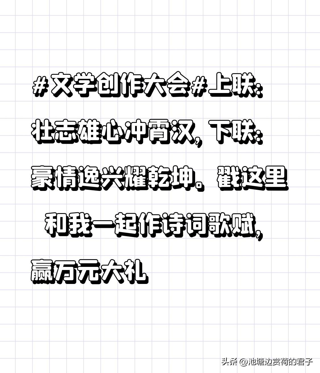 文学创作大会 这上联“壮志雄心冲霄汉”,那气势简直绝了,仿佛看到一位豪情万丈的英雄,怀揣着远大志向,要冲破云霄。下联“豪情逸兴耀乾坤”也丝毫不逊色,把那种潇洒豪迈的劲头展现得淋漓尽致,感觉能照亮整个天地。 文学创作大会搞这么个对联活动太有意思了。对联这东西,短小精悍却韵味无穷,既能考验文采,又能展现思维。要是能对出绝妙的对联,说不定真能赢下那万元大礼。我可得好好琢磨琢磨,说不定我的下联能惊艳全场,嘿嘿,想想还有点小激动呢!