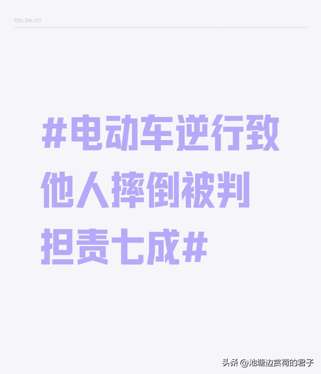 电动车逆行致他人摔倒被判担责七成 电动车逆行这事真的太危险了,最近长沙就有这么个事儿。2025年8月14日,袁某骑青桔共享电动车逆行,在路口遇上王某正常行驶。王某紧急刹车摔倒,车、眼镜、手表都受损了。交警认定袁某主责,王某次责。 王某起诉索赔5941.27元,袁某却觉得自己责任没那么大,还质疑费用真实性。但法院审查后,还是判袁某担70%责任,赔2494.8元。 一般来说,逆行有明显过错,常担主责或全责。要是被撞者也有错,双方就都得担责。所以骑电动车可得遵守交规,逆行真的害人害己!