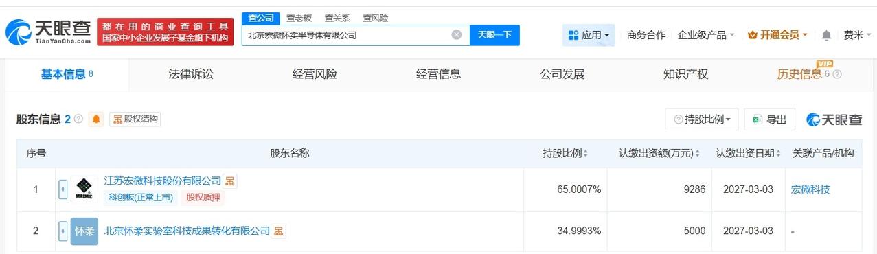 宏微科技等在北京成立半导体公司 注册资本约1.4亿 天眼查App显示,近日,北京宏微怀实半导体有限公司成立,法定代表人为赵善麒,注册资本约1.4亿人民币,经营范围包括电力电子元器件制造、半导体分立器件制造、集成电路设计等。股东信息显示,该公司由宏微科技(688711)、北京怀柔实验室科技成果转化有限公司共同持股。 天眼查信息: