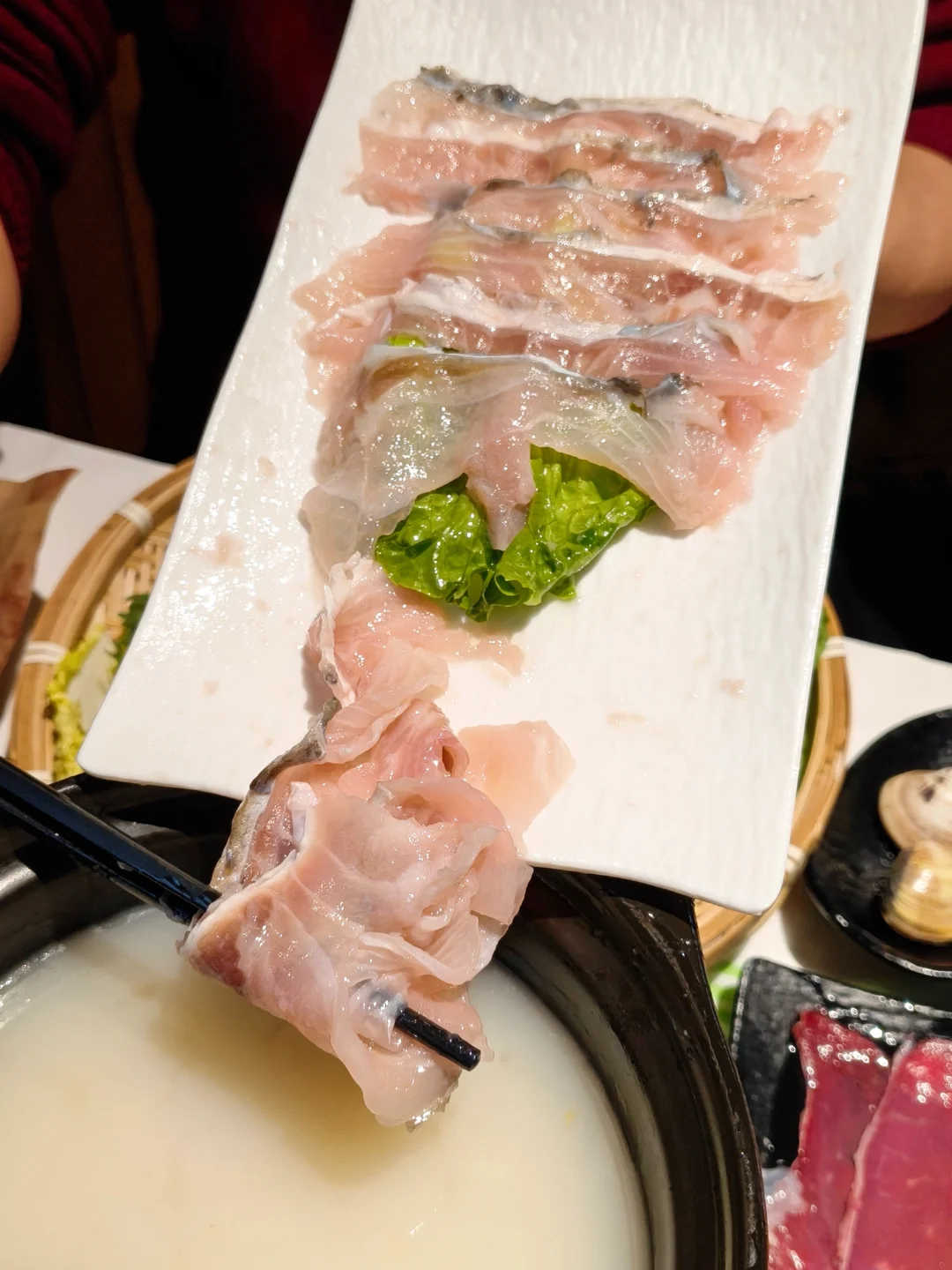✔️脆肉鲩:薄切无刺,粥底涮完鲜甜度直接拉满💯