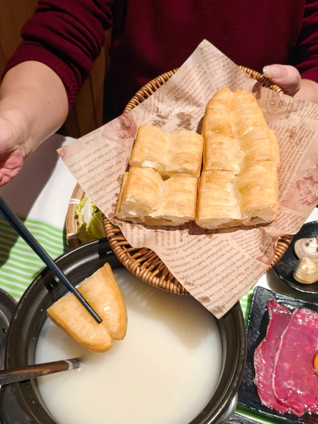 ✔️牛花肉:嫩到入口即化,裹上蛋液涮粥水,自带奶香!!