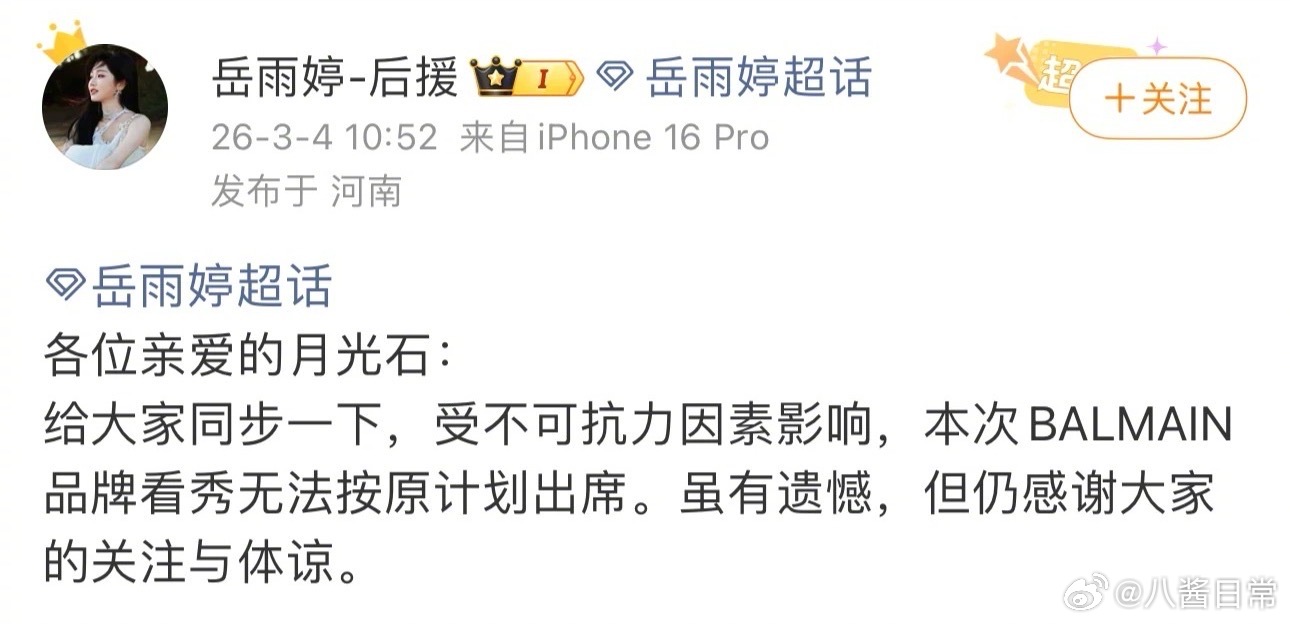 LV的超级vip富哥胖子说岳雨婷去巴黎时装周是自费去的并没有被品牌邀请曝岳雨婷没