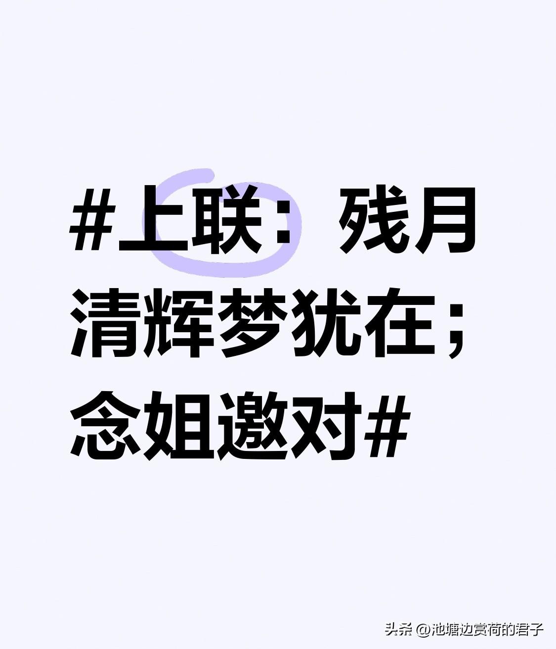 看到“残月清辉梦犹在”这个上联,瞬间就被带入了一种静谧又略带惆怅的氛围。残月洒下清辉,梦境仿佛还在延续,让人思绪万千。 我琢磨着对个下联,“晓风淡影意难消”。“晓风”对应“残月”,都是很有意境的自然景象;“淡影”与“清辉”相呼应,一个是朦胧的影子,一个是清冷的光辉;“意难消”和“梦犹在”对仗工整,且都有一种难以消散的情绪在里头。不知道这样的下联能不能对上这绝美的上联呢,欢迎各位对联高手来交流!