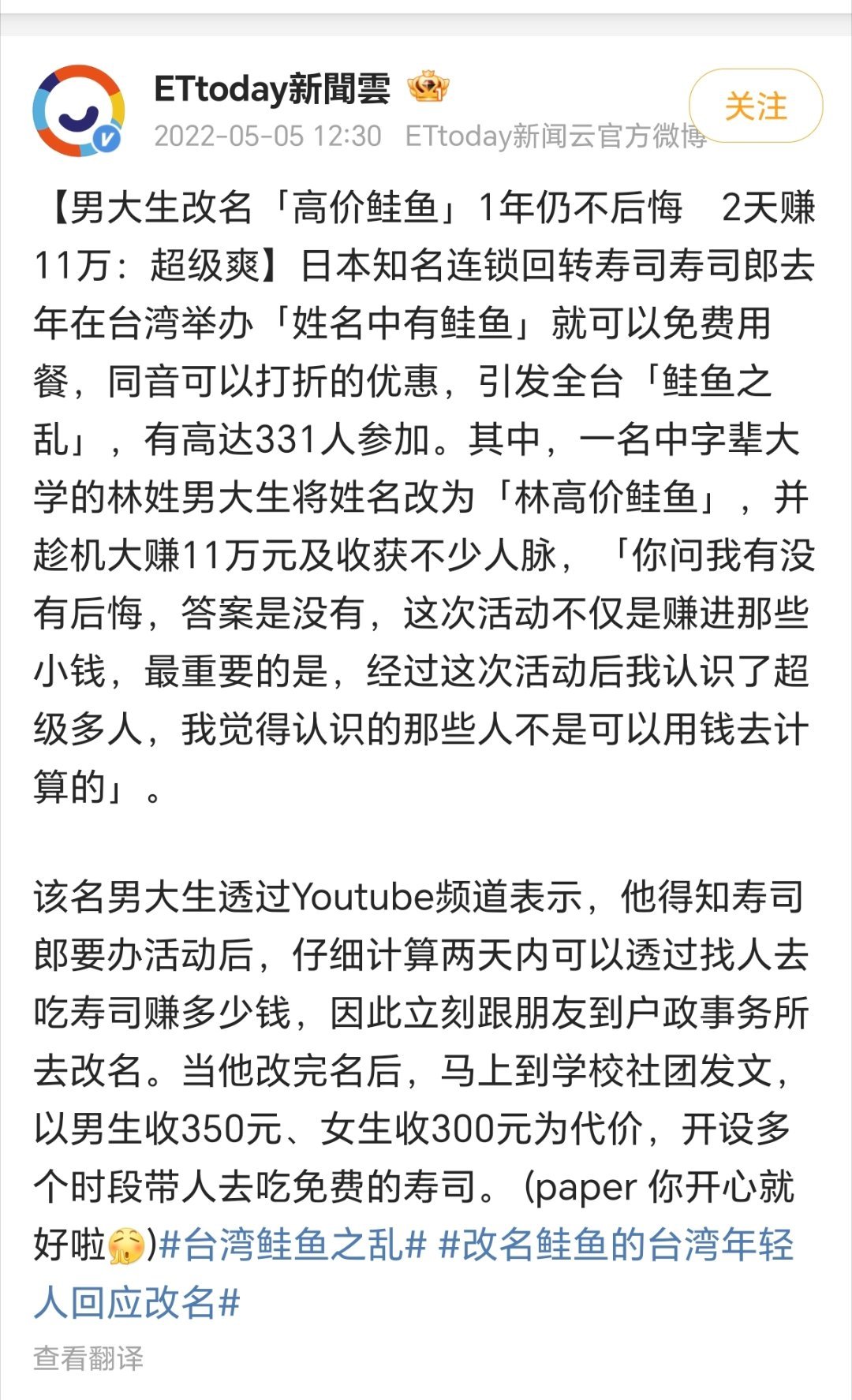 对于寿司郎这个牌子,我只记得台湾的鲑鱼之乱了。官方通报寿司郎吃出金枪鱼寄生虫卵