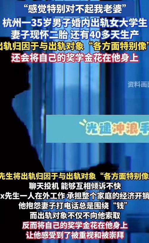“太狗血!”浙江,一35岁男子趁妻子怀二胎,在网上认识一20岁女大学生,两人线下见面并发生了关系,女子不图男子钱,甚至反拿出奖学金给男子花,当她得知男子有家庭后,却坚决不愿断绝关系! 此事主角是个35岁的男人,咱们就暂且叫他X先生,结婚快十年了,家里已经有一个女儿,妻子现在还怀着二胎,预产期就剩四十多天,一直在老家待产,撑起家里的大小事。 而X先生一个人在杭州打工,说是家里的顶梁柱,要承担所有的家庭开销,房贷、奶粉钱还有即将到来的二胎开支,压得他喘不过气,他自己说,跟妻子相处久了,俩人的聊天早就没了当初的热乎劲儿。 每次打电话,聊的不是钱就是家里的琐事,他觉得自己不像个丈夫,更像一台只会挣钱的提款机,心里特别压抑,就在这种时候,他在网上认识了一个20多岁的女大学生,女孩还在上学,成绩不错,能拿到奖学金,对X先生满是崇拜。 俩人线上聊得特别投机,没多久就约着线下见了面,一来二去,就发生了关系,让人意外的是,这个女孩跟别的图钱的不一样,她不向X先生要一分钱,反而心疼他在外打拼不容易,甚至直接把奖学金拿给他花。 X先生一开始就没敢说自己已婚,更没提妻子怀二胎的事,就这么一直瞒着,享受着女孩的崇拜和付出,也暂时逃避了家里的压力,可纸终究包不住火,时间久了,他心里也有点发慌,最终还是跟女孩坦白了自己有家庭的事实。 本以为说了真相,女孩会生气离开,毕竟谁也不想做破坏别人家庭的人,可没想到,女孩得知后哭闹不止,却死活不愿意跟他断绝关系,还逼着他在妻子和自己之间做选择。 这一下,X先生彻底慌了,他既觉得对不起老家待产的妻子,心里有愧疚,又舍不得放下这个对自己掏心掏肺的女孩,陷入了两难的境地,最后甚至没办法,只能找人求助,问该怎么解决这个烂摊子。 其实仔细想想,这事儿里没有一个赢家,X先生嘴上说自己压力大、委屈,可再大的压力,也不能成为背叛家庭的借口,妻子怀着孕,独自在老家照顾孩子,承受的辛苦一点不比他少,他所谓的“被忽视”,不过是逃避责任的借口。 而那个女大学生,明明是个成绩优秀、能拿到奖学金的好孩子,却因为涉世未深,错把已婚男人的温柔当成了真爱,甚至倒贴自己的奖学金,到最后得知真相,还执迷不悟不愿放手,说白了,最后伤害的还是自己。 婚姻本来就不是一时的新鲜感,更多的是责任和担当,X先生现在的纠结,从来都不是愧疚,而是贪心,既想守住家里的安稳,又想留住外面的温暖,可世上哪有这么好的事。 希望他能早点清醒,守住自己的底线,也希望那个女大学生能及时止损,别再为不值得的人浪费自己的青春。