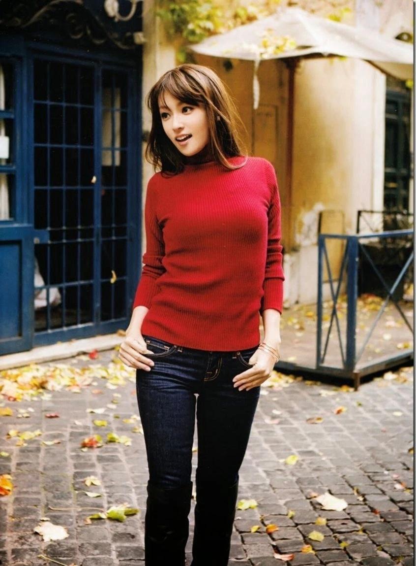 秋日暖阳下,红衣少女倚墙微笑,岁月静好。 深田恭子,1982年11月2日生于东京,日本知名女演员、歌手。1996年通过新星选拔赛出道,凭《神啊!请多给我一点时间》获日剧学院赏最佳女配角,又以《下妻物语》拿下日本每日映画大奖最佳女主,2019年凭借《初次恋爱那一天所读的故事》斩获日剧学院奖最佳女主角,还发行过20部写真集,是日本演艺圈兼具颜值与实力的艺人。 深田恭子