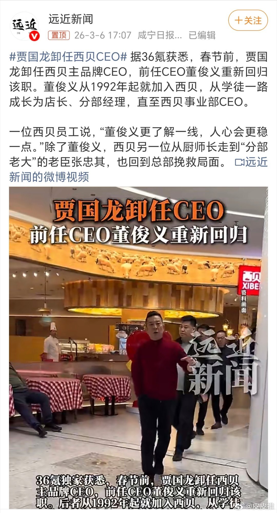 贾国龙卸任西贝CEO对于西贝这个品牌来说,贾国龙卸任与否并不重要。