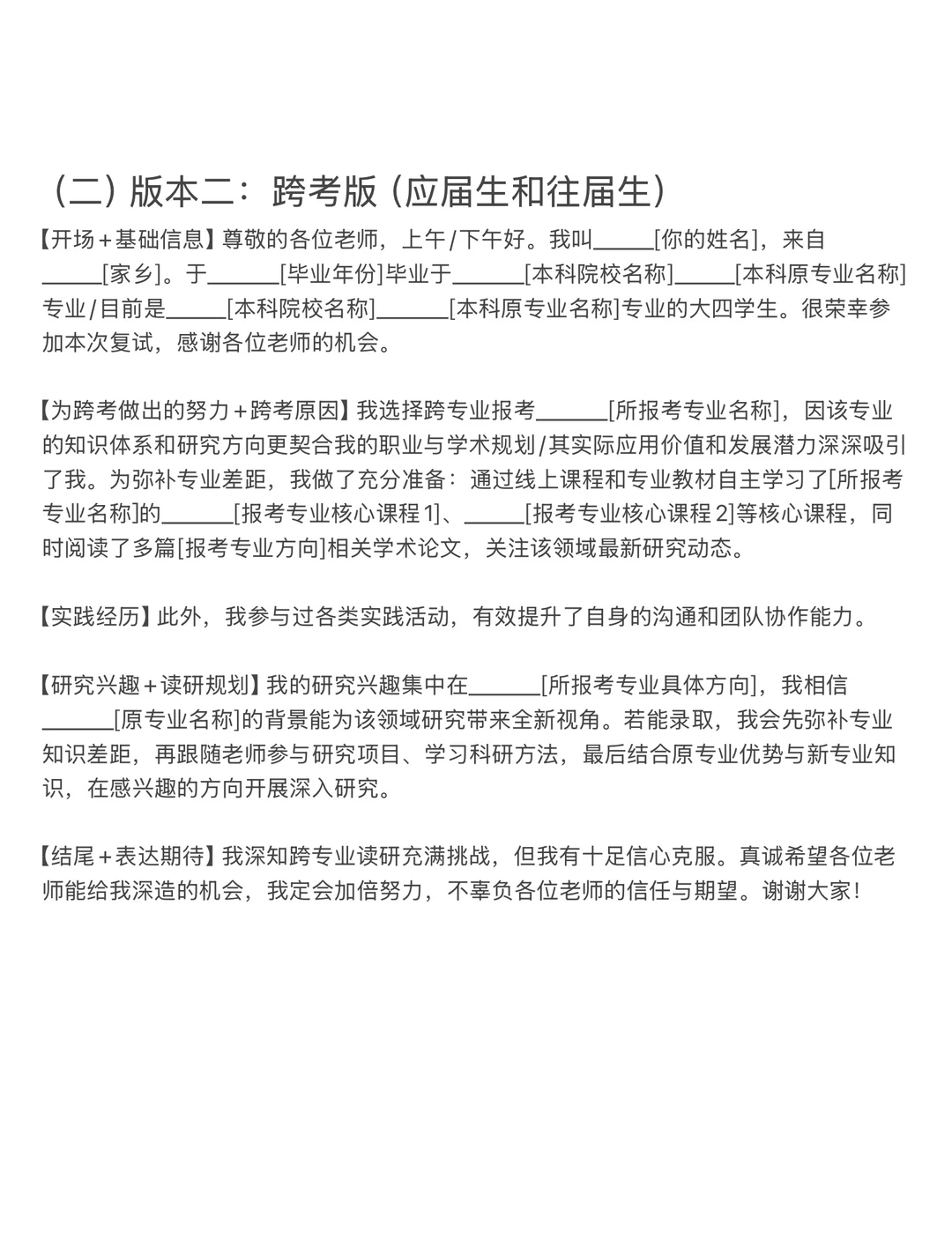 (二)版本二:跨考版(应届生和往届生)