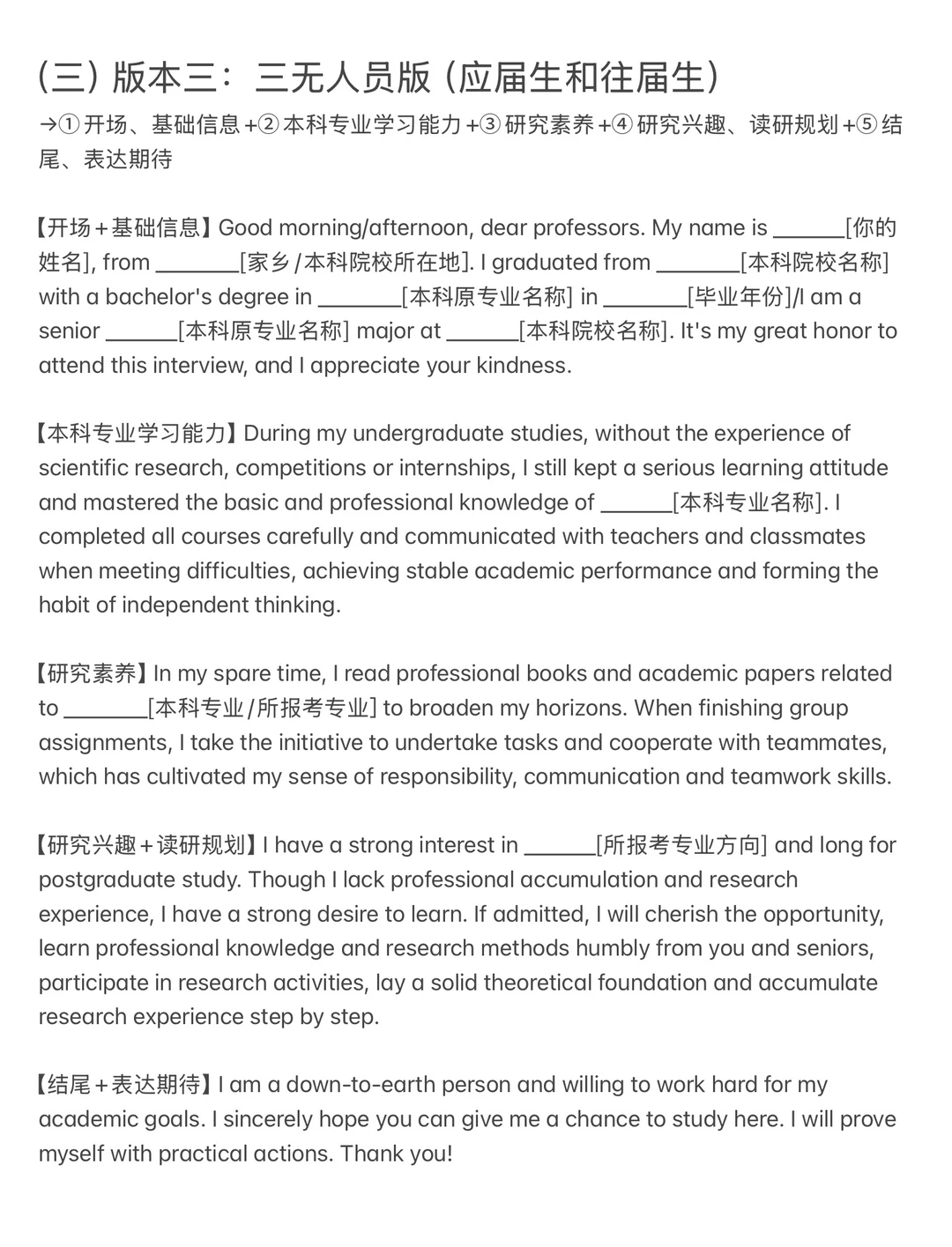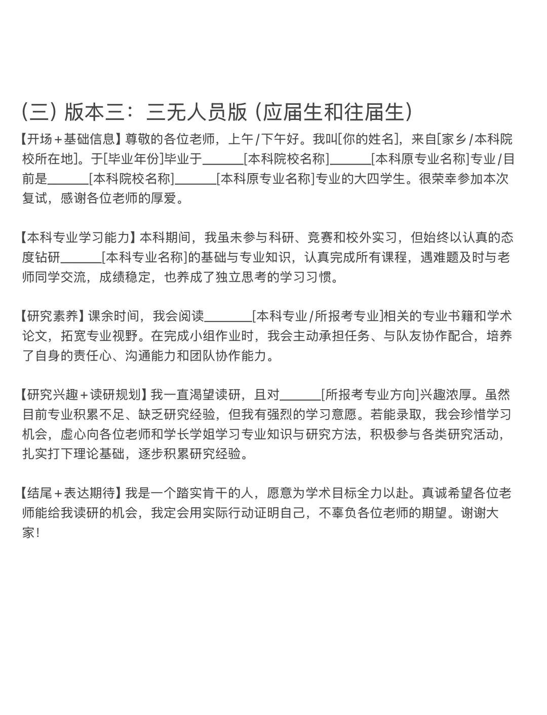 (三)版本三:三无人员版(应届生和往届生)