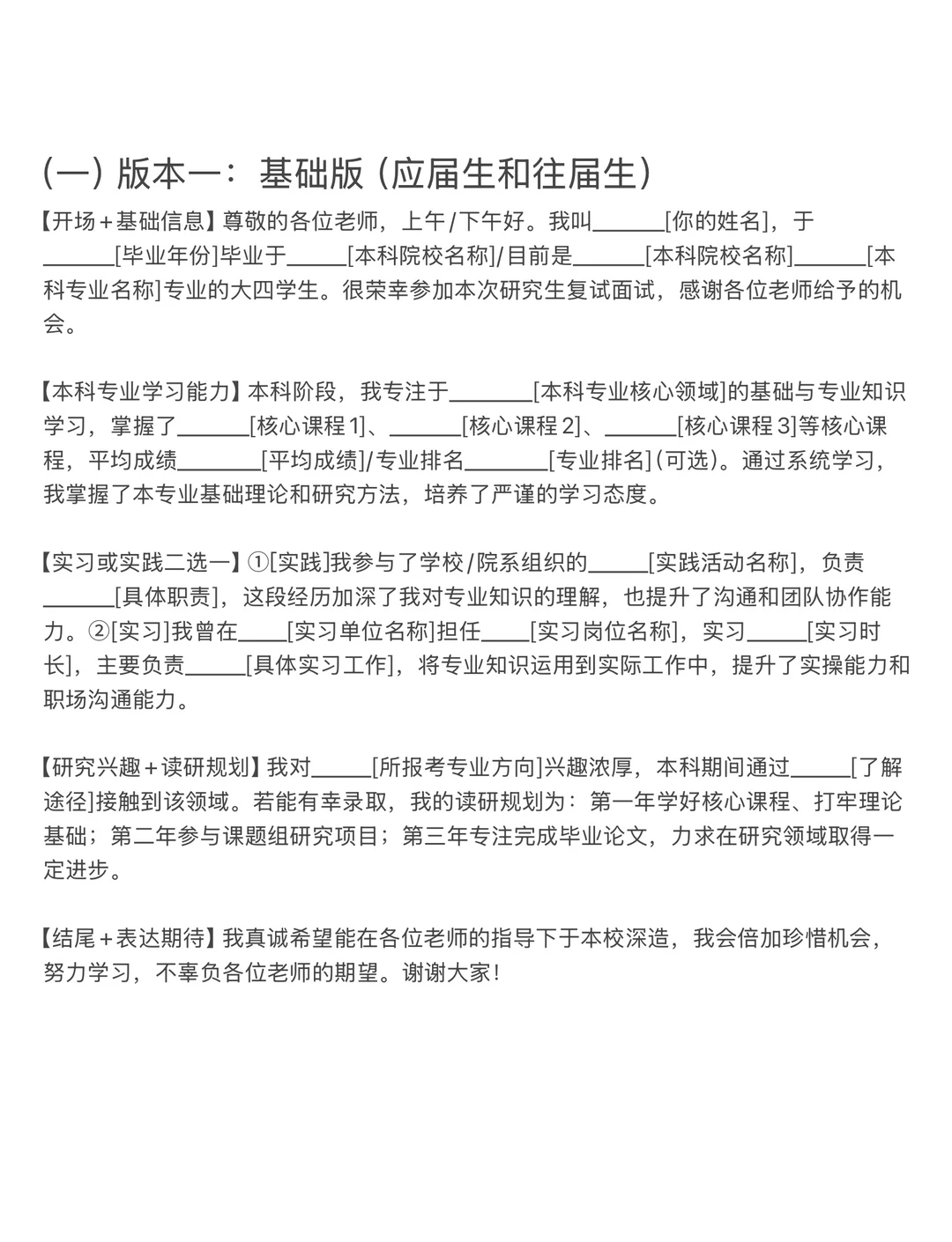 (一)版本一:基础版(应届生和往届生)