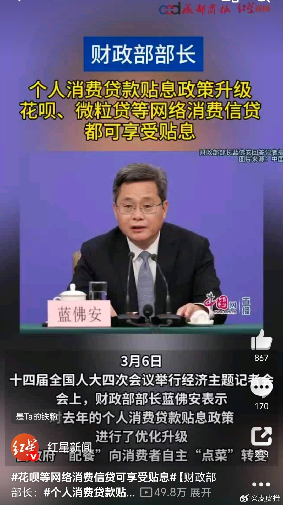 花呗等网络消费信贷可享受贴息前两年,我把花呗、借呗全都关掉了现在就买东西的时候会用京东白条分期付款。