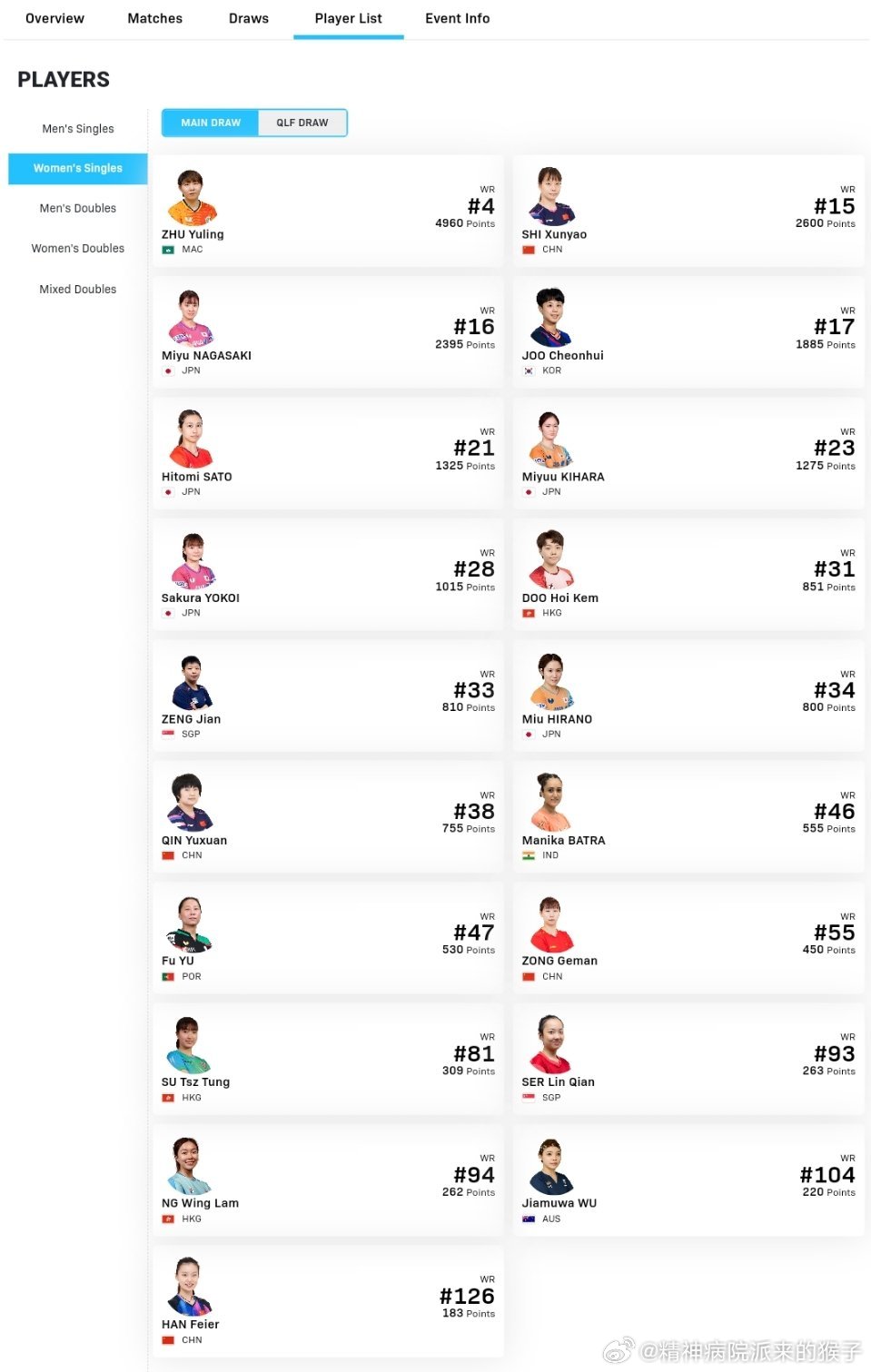 2026WTT太原常规挑战赛中国队单打报名:4月7日-12日男单正赛:向鹏、陈垣宇、温瑞博、黄友政男单资格赛:李和宸女单正赛:石洵瑶、覃予萱、纵歌曼、韩菲儿女单资格赛:姚睿轩、姜依依