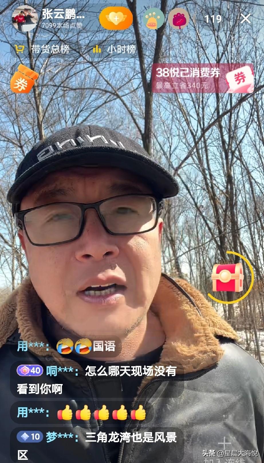 刚刚刷到云鹏的二表哥出来直播带货了, 刚开始我以为是云鹏的爸爸呢, 因为他开头写的是张云鹏 所以我就点进来, 但是我在里面看了一会儿,根本没有什么人气,他卖的是农夫山品,东北的跑山鸡,跑猪,鸡蛋什么的 还看到有网友质问他,那天云鹏认亲现场上怎么没有看到你? 然而云鹏二表哥回复了这位网友他为什么那天没有来到现场,因为他有事,出门了, 但是晚上他来了,而且还坐在一桌上吃饭了, 直播间才100多少观看[捂脸]