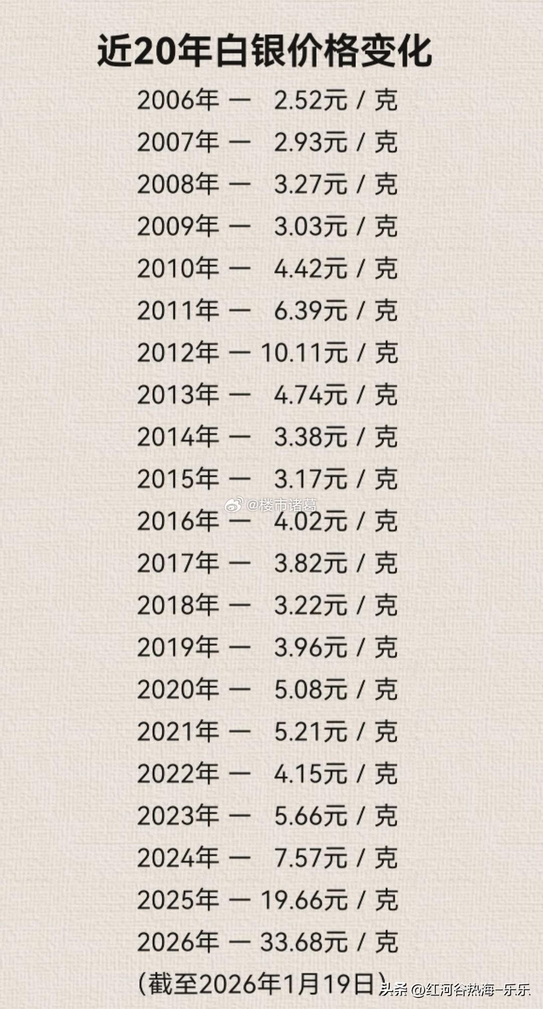 近二十年黄金白银的价格变化。。