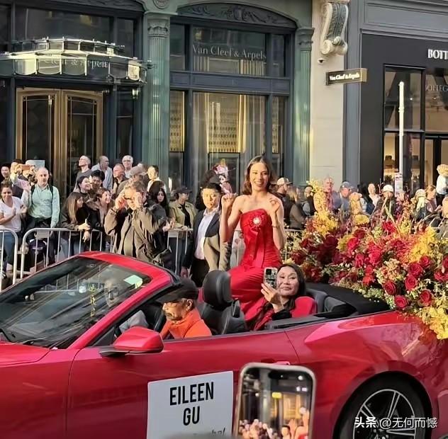 谷爱凌和母亲都穿着红色的衣服,在洛杉矶唐人街参加了马年活动,谷爱凌的表现大大方方,非常的迷人,她母亲坐在装饰鲜花的车上,看起来非常的风光,非常的亮眼,她们应该是这场活动最亮眼的一部分,看着真为她们高兴,但是听说在美国也有一些极端的人,对谷爱凌很不喜欢,只能说这些人的心肠太狭隘了!