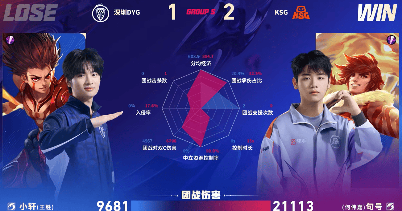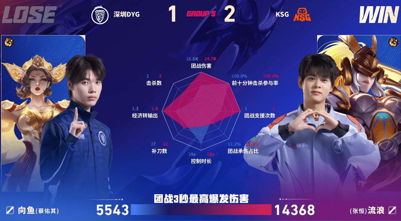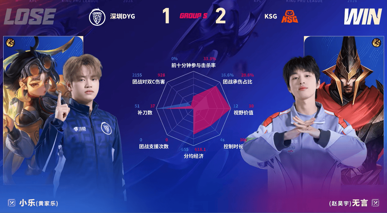KSG/DYG第三局数据对比:无言承伤占比拉满