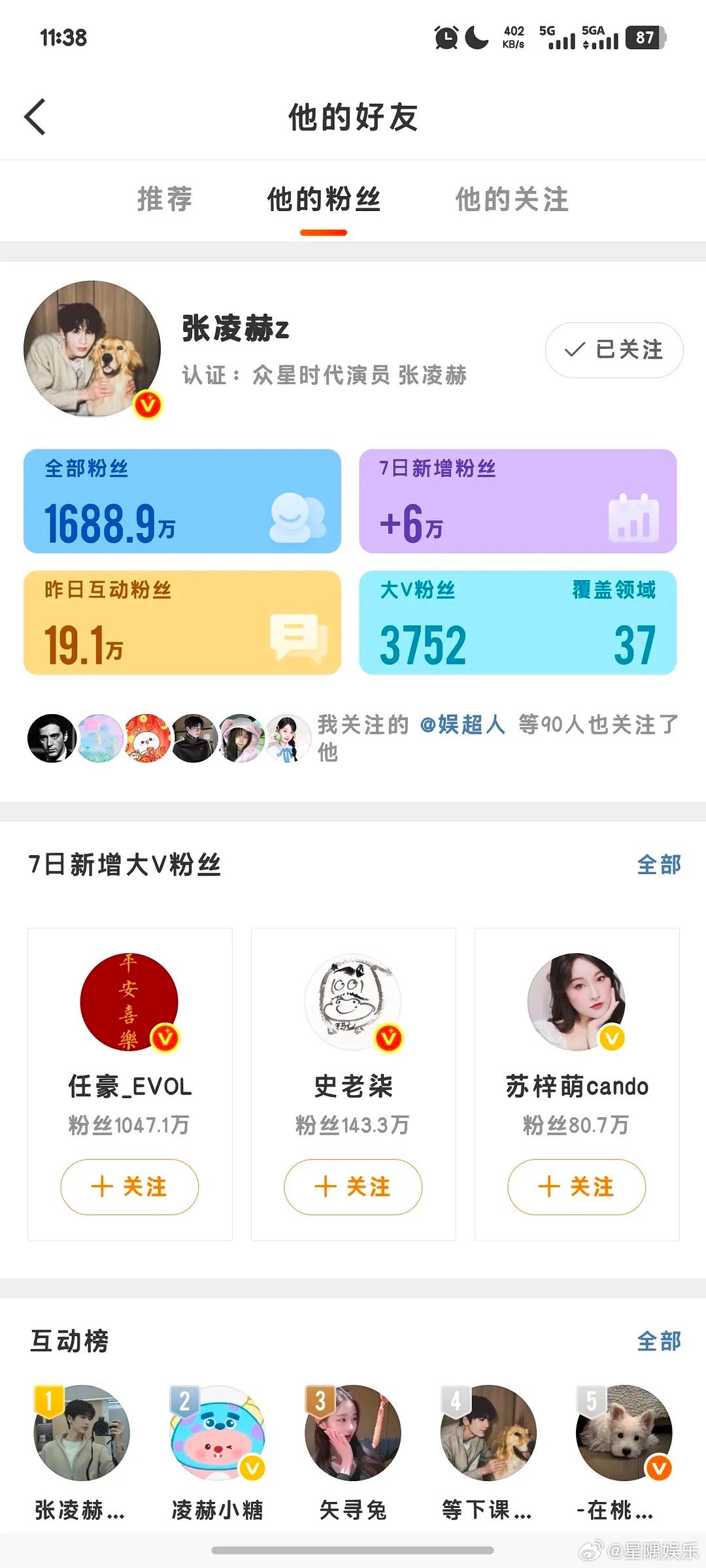 张凌赫田曦薇涨粉情况怎么样