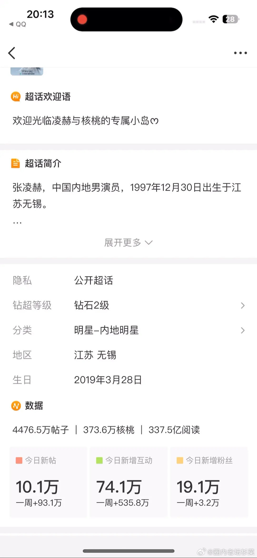 张凌赫剧播后个人七天涨fo8.8w,超话涨19.1w,光买超话,没买个人