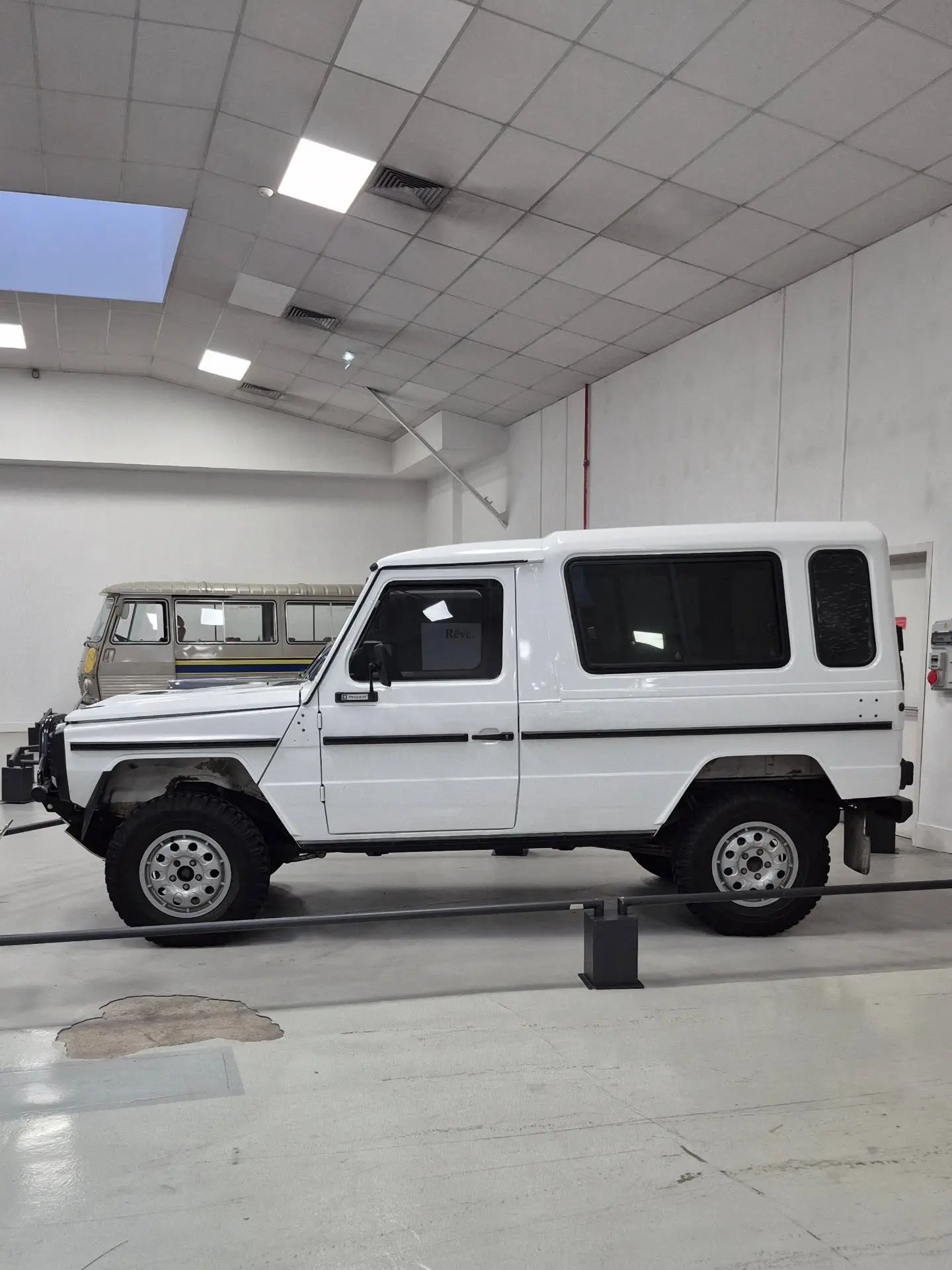 标致P4民用版(1985-1992年?),摄于标致冒险博物馆(法语原名:Musée de l'Aventure Peugeot)。 这款车最初由标致为法国军方打造,后续也推出了民用版本。它基于奔驰G级底盘授权生产,搭载标致自家的发动机与车桥……我此前从未见过这款实车。