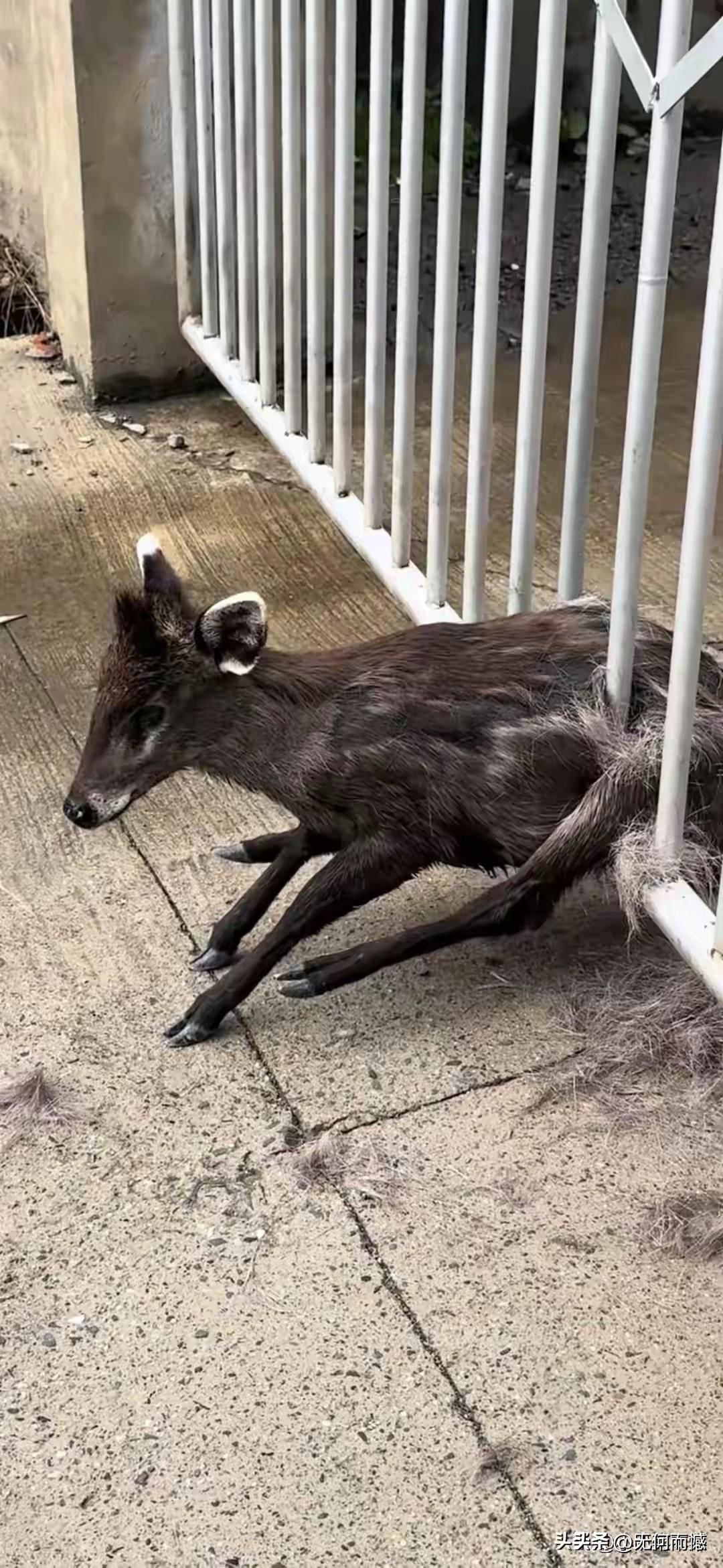 这只小动物长得有点像鹿,耳朵特别大,是个偶蹄动物,也不知道是受到了惊吓还是其他原,竟然钻到了栅栏里,被栅栏缝给卡住了,地点是江西上饶,多亏被一个好心人发现,把它给解救了,据有些网友说,这东西不是鹿,而是鬣羚,一级保护动物!现在我们的生态环境好了,野生动物比以前多了,现在我们家乡山上的野鸡遍地都是,以前根本就看不着,人和动物和谐相处,人和自然和谐共生,这才是最好的!