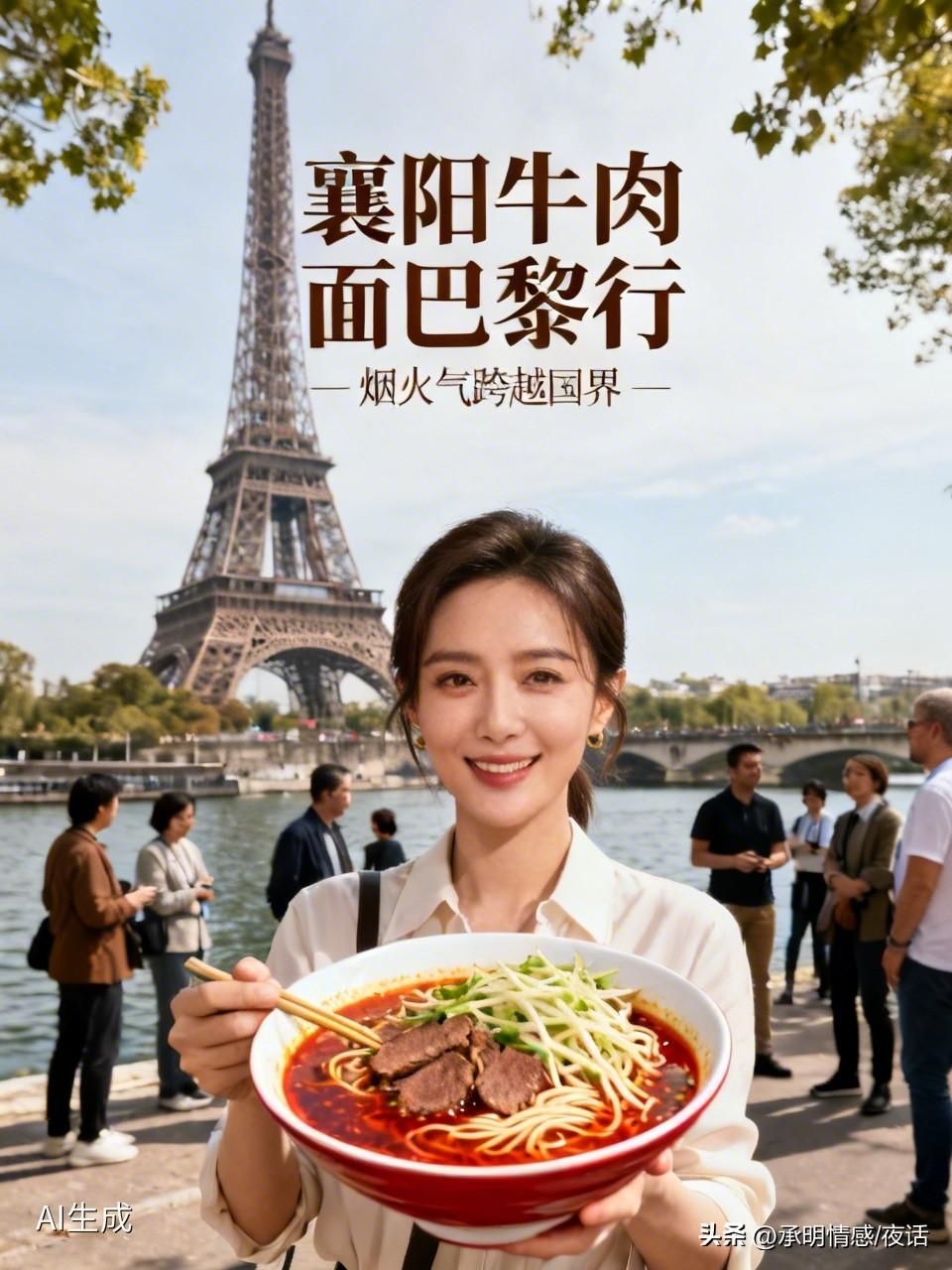 家人们!快瞧袁姗姗在巴黎搞的大动静,她居然在埃菲尔铁塔下开吃襄阳牛肉面啦! 袁姗姗在巴黎参加活动,于塞纳河畔邂逅家乡味道。她端着红油亮汤的牛肉面,搭配豆芽和碱水面,背后却是铁塔,这反差感太绝了!她用地道家乡话喊话,身边人还吃着热干面和面窝。这哪是吃面,分明是将襄阳烟火气带到浪漫之都,吸引了当地华人和老外。 这波文化输出我给满分!你想带啥家乡小吃闯世界?点赞留言告诉我,想看就赶紧收藏!