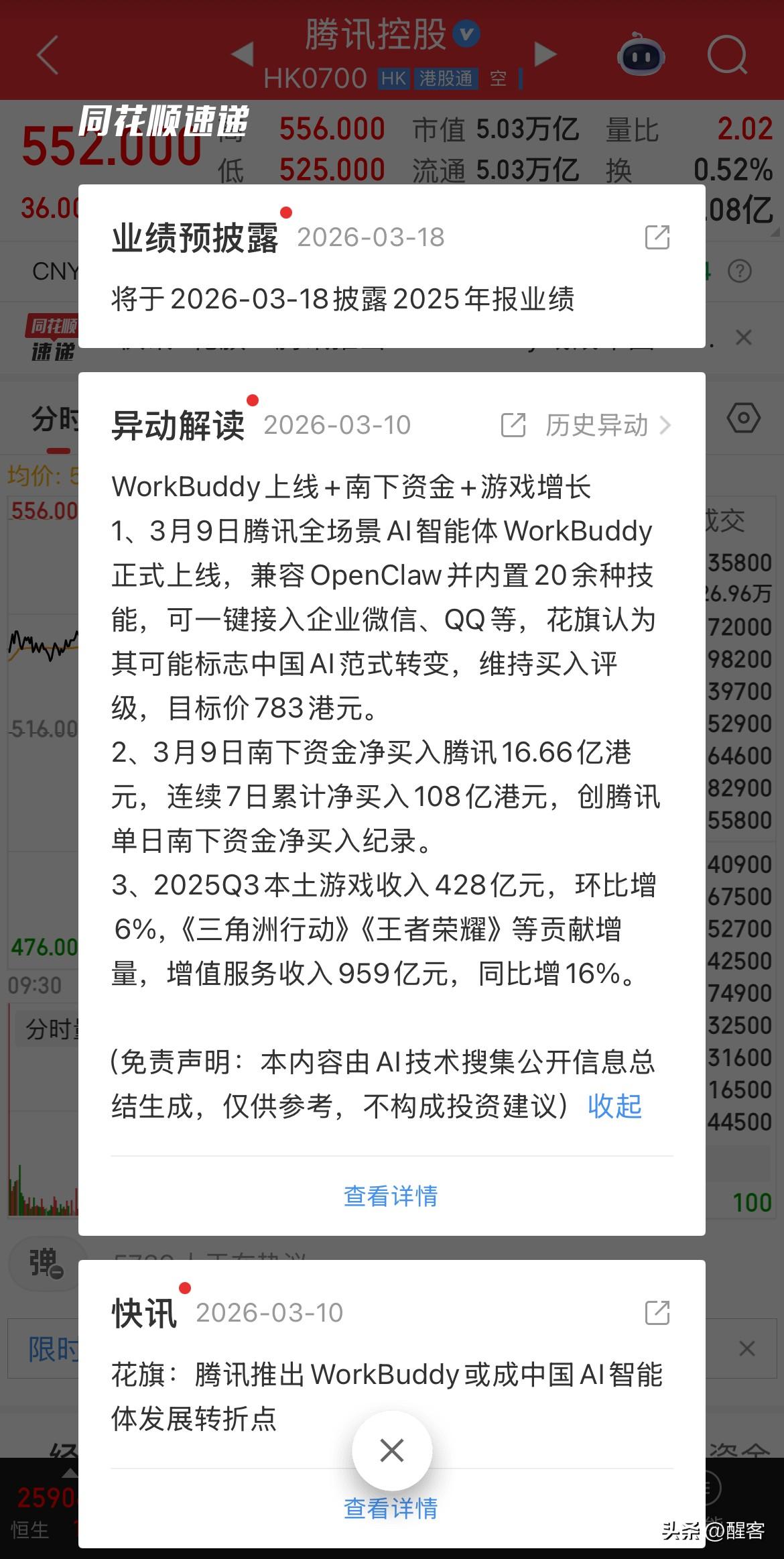 错过了AI浪潮,腾讯不会错过Agent智能体,腾讯版OpenClaw以最快的速度推出,今日股价大涨7%上演“旱地拔葱”。 随着OpenClaw的爆火,深圳、江苏各地出台OpenClaw的支持政策,腾讯绝对不能错过这次社交媒体第一位的流量入口机会,不仅仅第一时间宣布腾讯云、QQ、企业微信入口部署OpenClaw。更是第一个率先推出中国版OpenClaw的WorkBuddy智能体,以极快的速度上线。 腾讯这波流量和热点算是第一个拔得头筹的科技巨头了,而阿里巴巴、百度、字节跳动似乎动静不大? 实际上百度云一键部署,阿里巴巴钉钉都是第一批接入OpenClaw的平台,并且千问、豆包、DeepSeek也是其大模型饿支持方。Token的调用收入随着这波“小龙虾”智能体的爆火也会大赚一笔,而OpenClaw发布的大模型调用方面,智谱AI、MiniMax、DeepSeek流量居前,因此今日也可以见智谱和MiniMax股价再次暴涨超10%。