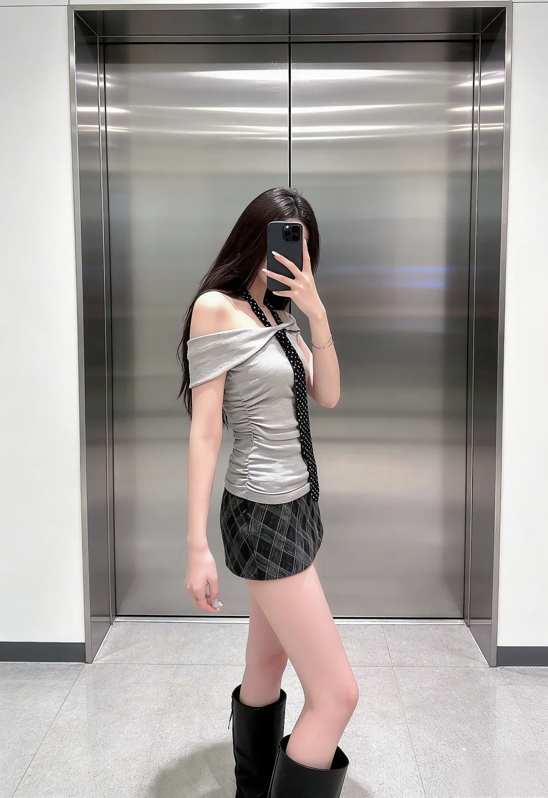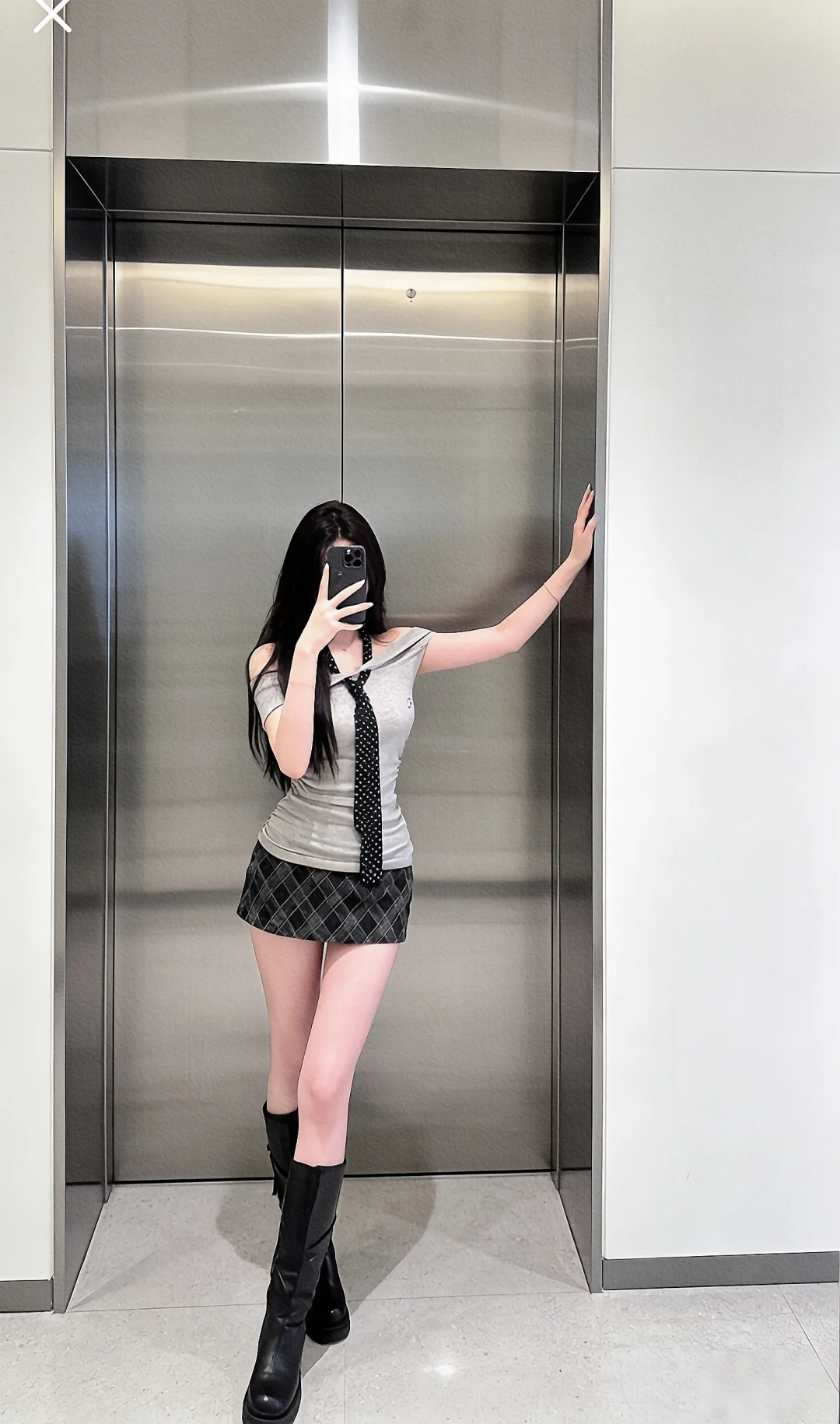 辣妹穿搭 超短裙 韩系穿搭分享 灰色系 好美