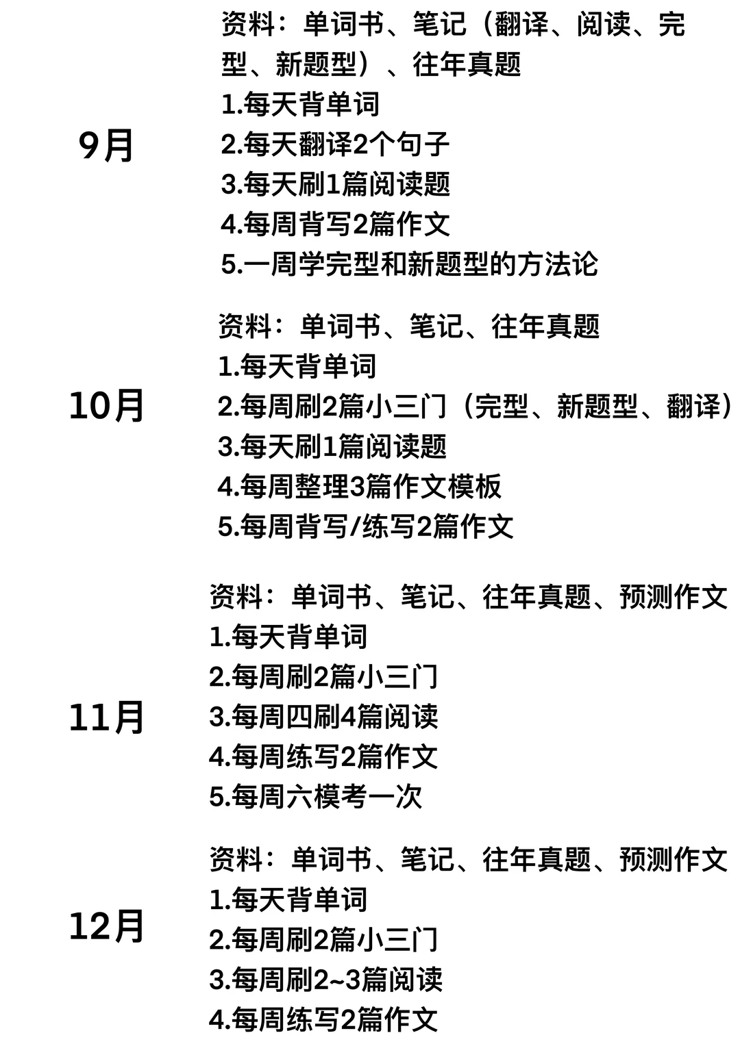 资料:单词书、语法笔记、外刊