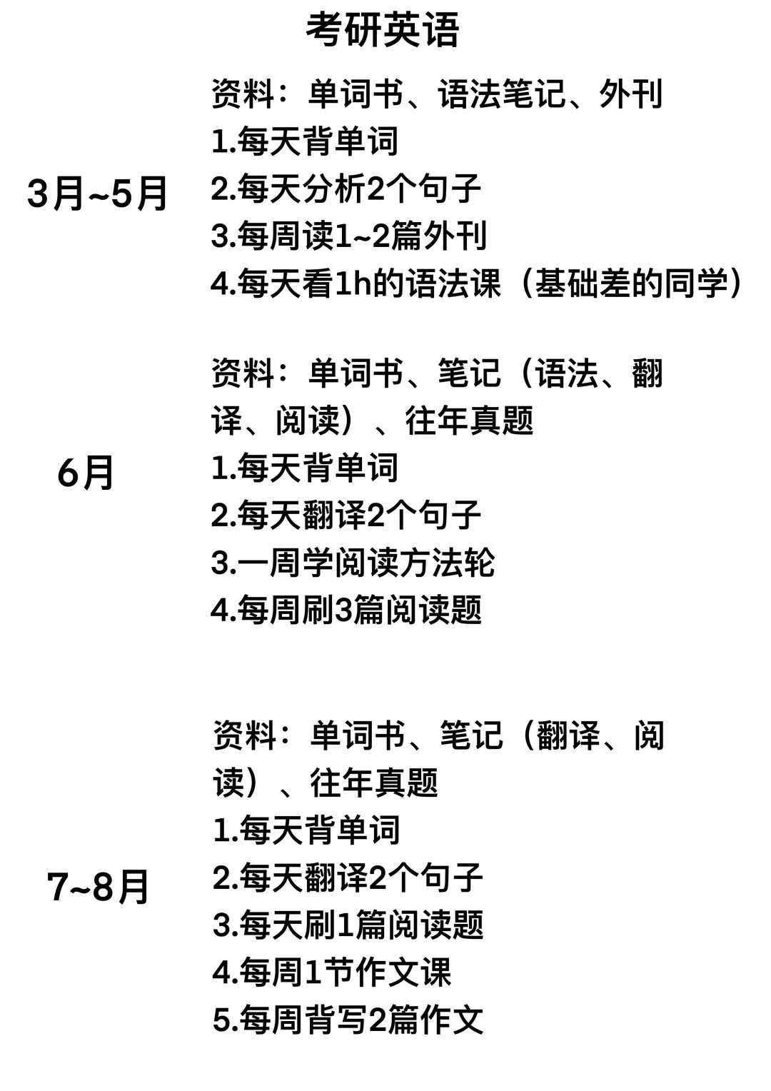 Stella~现在就是打基础阶段,可以只背单词,如果觉得只背单词太干了,可以每天分析2个句子结构+阅读考研英语同源报刊(等背完一轮单词再开始刷往年真题)