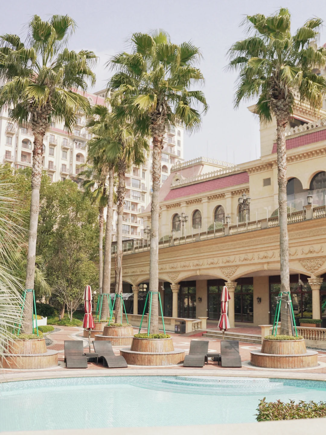 每次带宝宝出门,最怕赶路折腾,却也总盼着能偶遇些浪漫。这次在上海虹桥,我们没有冲向人山人海,而是一头扎进这座复刻西班牙阿尔罕布拉宫的异域庄园酒店,每一处都像从古典油画里裁下来的,带娃拍照也美得毫不费力。 暖米白的复古石材外墙,对称的伊斯兰风雕花廊柱,柱头的花纹精致得能看清纹路;鎏金檐角在阳光下泛着柔光,穹顶下的拱形窗棂配着复古格纹玻璃,连光影都变得温柔起来。门前的喷泉水雾轻扬,石雕小天使静静伫立,推婴儿车走过,裙摆和水雾缠在一起,随手一拍就是西班牙庄园电影感大片。 走进大堂,挑高的空间挂满了水晶吊灯,光线透过切割面洒下来,在大理石地面上晃成细碎的金点;旋转楼梯的铁艺扶手缠满藤蔓花纹,宝宝好奇地伸手摸,我扶着栏杆俯拍,楼梯的弧线刚好框住他小小的身影。走廊的墙面有细腻的欧式浮雕,暖黄壁灯一盏盏亮起,傍晚时推着宝宝慢慢走,像闯入了欧洲城堡的安静午后。 房间外的花园更是宝藏拍照地。修剪整齐的庄园绿篱,草坪上散落着复古长椅和白色花架;爬满藤蔓的拱廊,是天然的取景框,逆光拍过去,宝宝的发丝都镀上金边。午后阳光斜斜的,坐在长椅上喂奶,身后是异域城堡塔楼,远处有淡淡的云,不用刻意摆姿势,岁月静好的画面就出来了。 房间里也藏着小惊喜。落地窗正对着花园,纱帘一拉,阳光变成柔和的光斑;迷你阳台摆着藤编小椅,抱着宝宝看楼下的喷泉和绿树,随手一张都是温馨亲子照。婴儿床、小帐篷和房间的城堡线条搭在一起,可爱又雅致。 餐饮区同样好拍。早餐的窗边位,雕花窗框配着白瓷餐具,宝宝啃着软面包,阳光落在餐盘上,暖融融的色调特别治愈;午后的大堂吧,蕾丝桌布配着鎏金咖啡杯,给宝宝冲好奶,我浅酌一口茶,连抓拍都满是松弛感。 不用出国,在虹桥就能住进阿尔罕布拉风城堡,带娃轻松解锁油画级亲子大片~