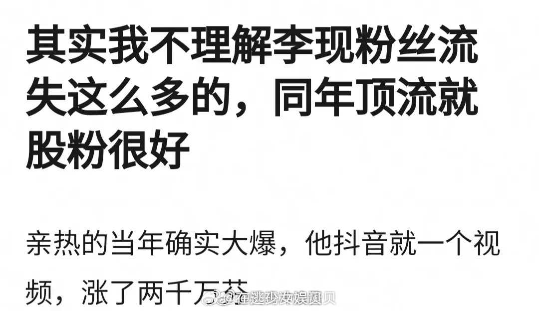 网友热议:为什么李现粉丝流失这么严重?明明当年《亲爱的,热爱的》确实大爆了,他douyin就一个视频,涨了2000w粉。谁能分析一下?