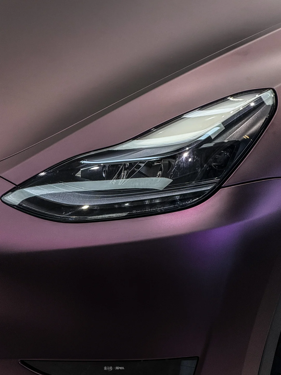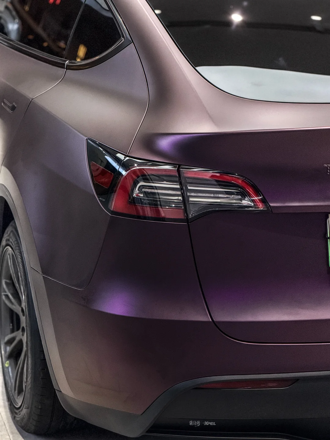 特斯拉ModelY改色贴膜AXPET流光黑魅红完工远观是沉稳深邃的暗夜黑