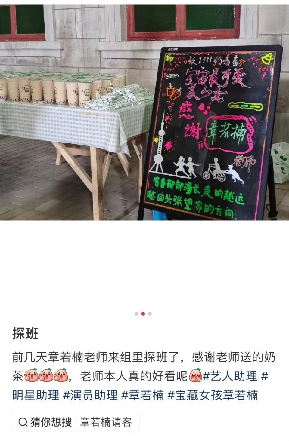 章若楠又请客别的剧组喝奶茶了,之前也经常请客,人美心善的楠楠