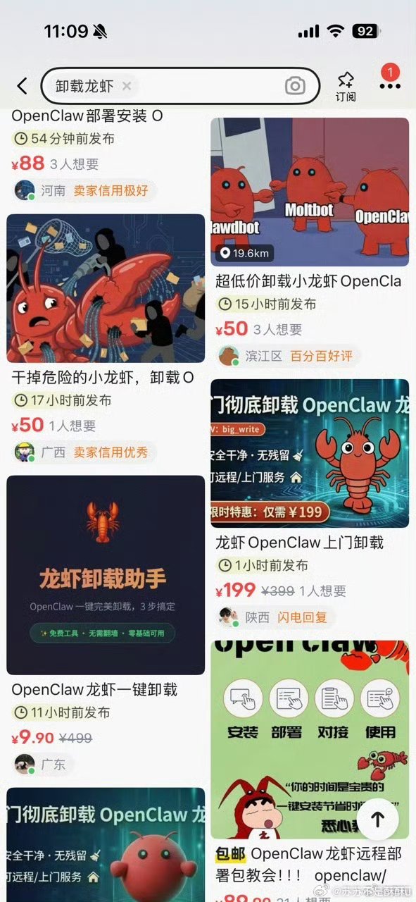 闲鱼有自己的龙虾保姆 别人还在研究怎么养龙虾,闲鱼已经卷到装虾+卸虾一条龙,从9.9到299元应有尽有,主打一个专业到位,这服务真的没谁了!