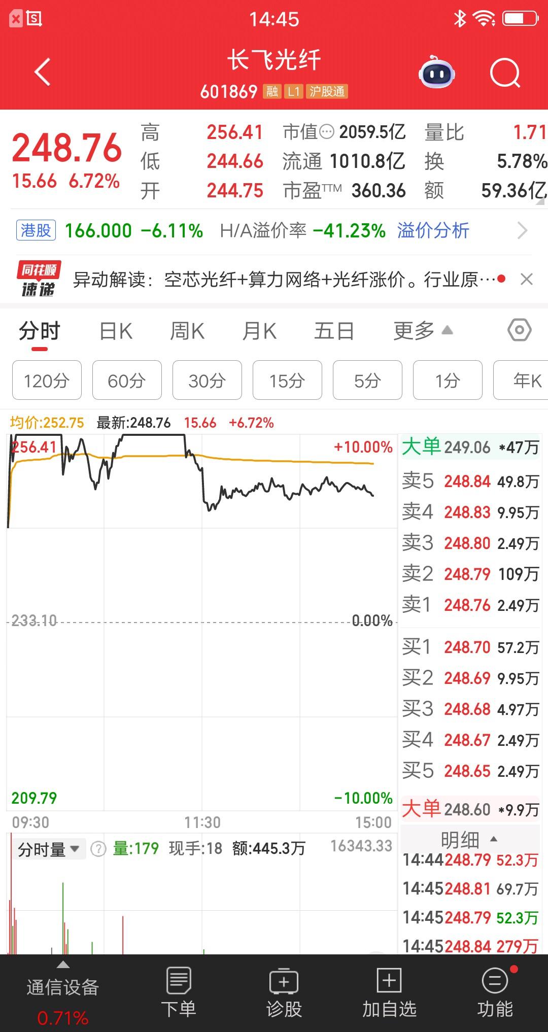 单模光纤涨价利好,创七年以来的历史新高。光纤概念股应声大涨,长飞光纤涨停炸板,光迅科技大涨六个点,天邑股份20cm涨停,长芯博创高开低走,中天科技高开低走,烽火通信高开低走,亨通光电高开低走,长江通信高开低走。 大涨以后稳住的,还可以关注,高开低走就有诱多嫌疑了。 1. 长飞光纤:全球光纤光缆龙头,棒-纤-缆全产业链,光棒自给100% 2. 光迅科技:光通信器件龙头,光模块、放大器、波分器件等 3. 天邑股份:光纤接入与连接设备商,PON网关、FTTR、光纤连接器等 4. 长芯博创:高密度光纤连接器龙头,MPO/MTP、高速铜缆、AOC等 5. 中天科技:光纤+海缆双龙头,棒-纤-缆一体化,特种光纤领先 6. 烽火通信:央企光通信龙头,棒-纤-缆全产业链,光传输设备核心 7. 亨通光电:光纤+海缆双龙头,棒-纤-缆全产业链,空芯光纤布局领先 8. 长江通信:光通信多元布局,参股长飞光纤(持股15.82%)