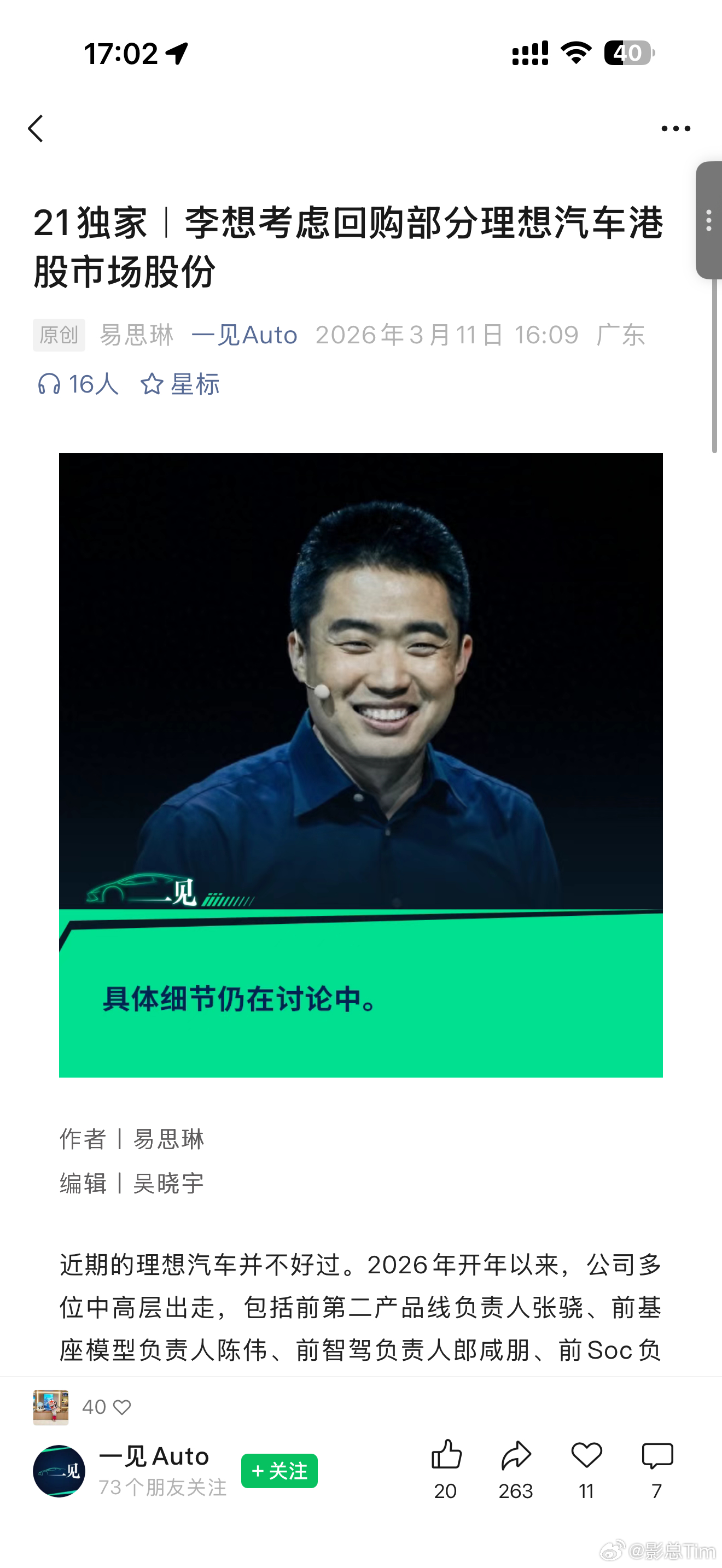 接下来对于谢焱,詹锟,湛逸飞,帅一帆,杰少,志鹏来说 M100在 L9 Livis 上的量产落地将会是 Li AD2.0 班底的背水一战,能不能力挽狂澜就看这个 April 了!