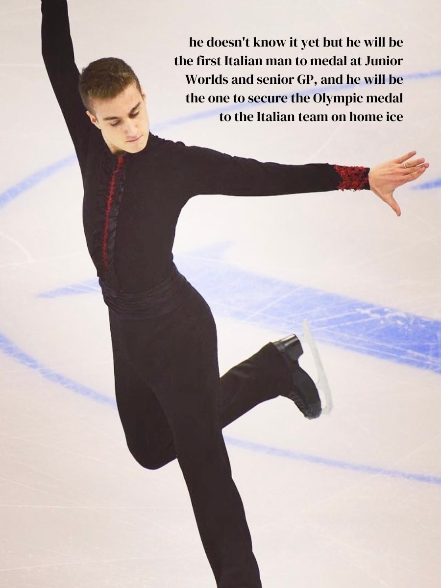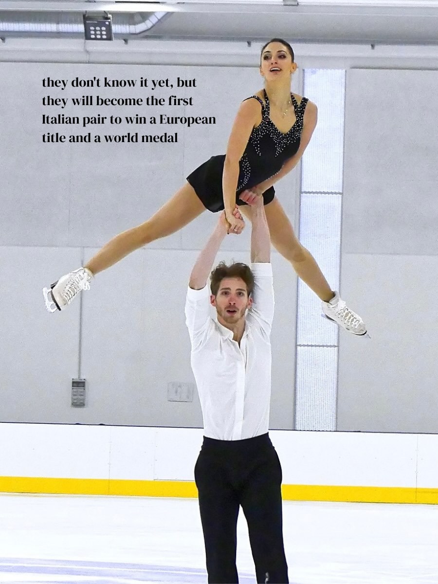 意大利花滑队团粉的文案有点浪漫,每个人都奋斗出了非凡成就,错位时空下的未来可期:此时的Charlène Guignard 和Marco Fabbri,尚不知晓他们将成为意大利史上获奖最多的冰舞组合。此时的Sara Conti和Niccolò Macii,尚不知晓自己将成为意大利首个双人滑欧锦冠军和世界奖牌。此时的Rebecca Ghilardi 和Filippo Ambrosini,还不知道他们将成为意大利首对连续在欧锦赛获得奖牌的双人滑选手。彼时年纪尚小的Lara Naki Gutmann还不知道,她将让意大利重返欧锦领奖台。那时的Daniel Grassal还不知道,他将成为首位赢得国际滑联大奖赛的意大利选手,还是首位成功完成后外结环四周跳的欧洲人。Matteo RIZZO还不知道,他将成为首位在世青赛和成年组大奖赛均获得奖牌的意大利男单选手,更将在主场冰面为意大利队锁定奥运奖牌。