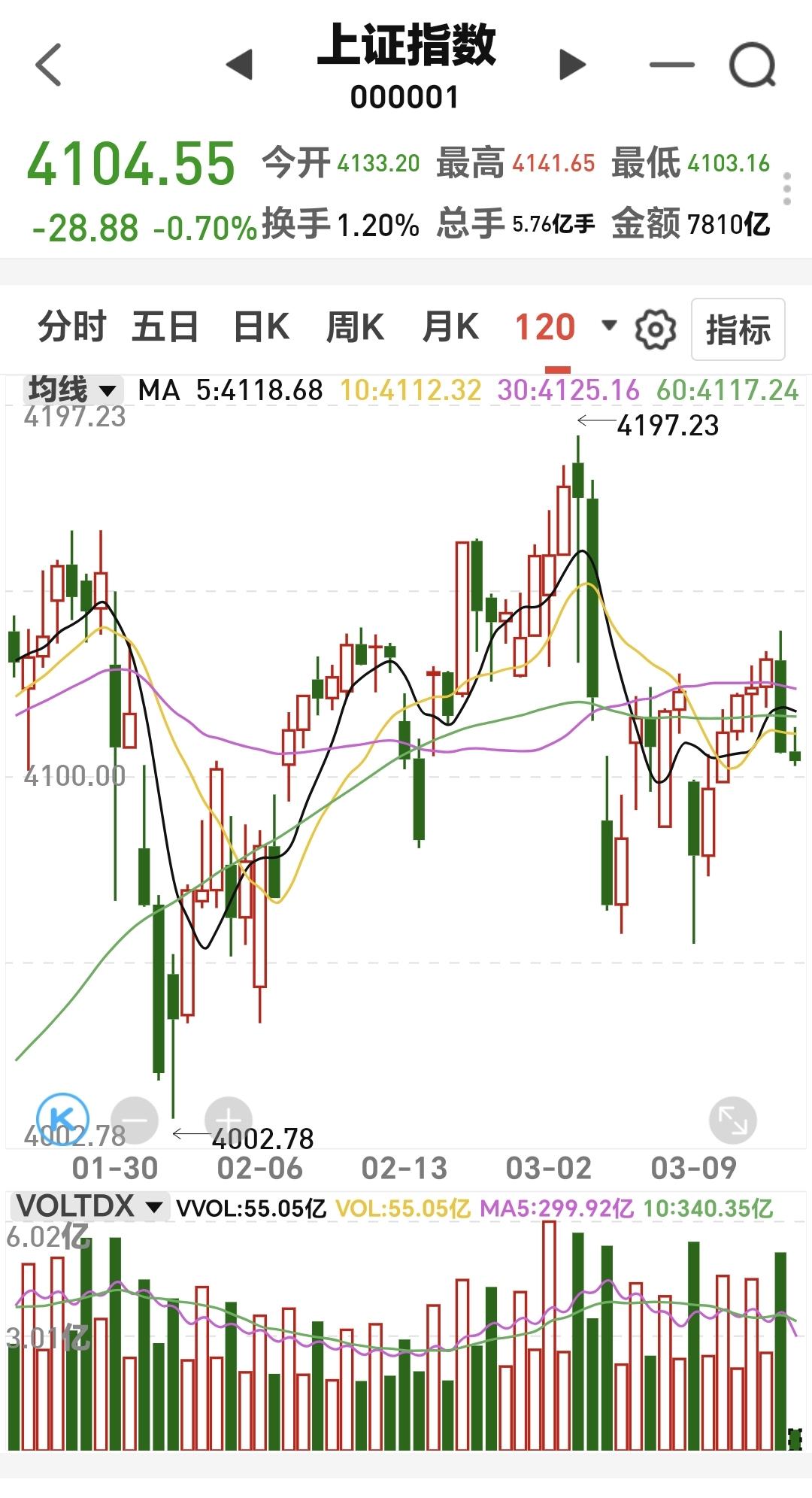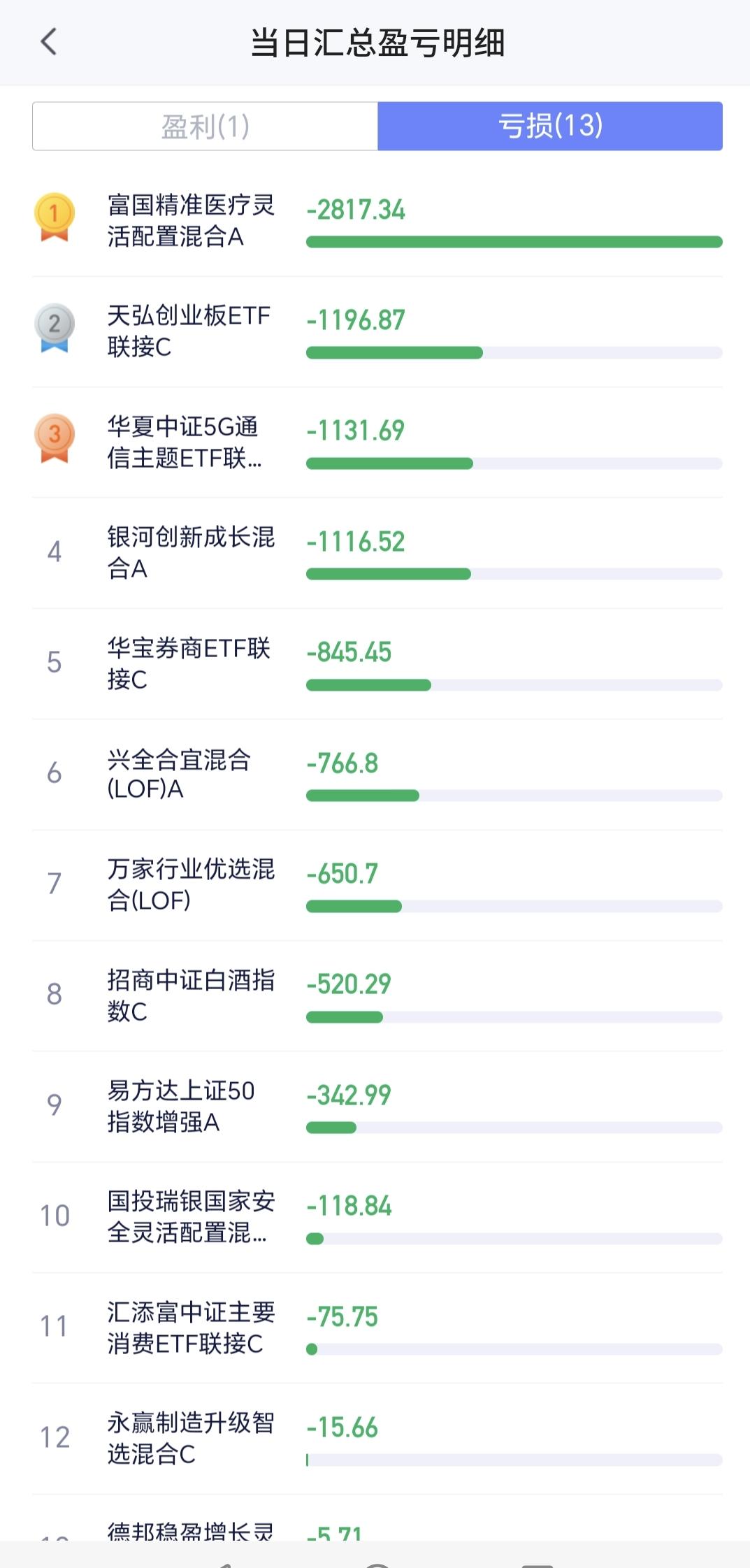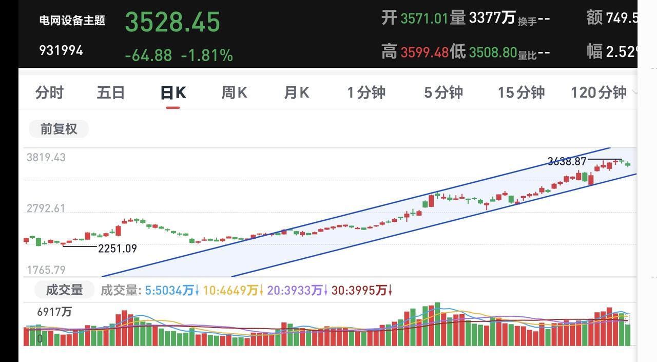 基金:市场指数继续震荡,今天究竟应该怎么办 下午开盘以后小幅度震荡,三大指数都是绿盘,创业板指下跌了1.83%,盘中点位3288点,上证指数下跌了0.72%,盘中点位4103点。 整个股票市场,上涨1134家,下跌4253家,涨停56家,跌停6家,上涨家数少于下跌家数。 持有的基金中,盘中估值盈利的只有新能源汽车板块,估值亏损金额最大的三个板块是:创新药板块,创业板指,5G板块,估值整体亏损了9682元。 整个基金市场,上涨2205家,下跌13744家,上涨幅度超过5%的2家,没有下跌幅度超过5%的基金。 图10是今天板块的上涨排行榜,上涨幅度最大的三个板块是:煤炭板块,电力板块,农林牧渔板块,图11是今天板块的下跌排行榜,下跌幅度最大的三个板块是:可控核聚变板块,cpo板块,通信板块,图12是今天基金的加仓和减仓人数,加仓7564999人,减仓2963389人,加仓人数超过了减仓人数。 整个市场主力资金净流入最多的三个板块是:化工板块,基础化工板块,煤炭板块,主力资金净流出最多的三个板块是:高端制造板块,国企板块,蓝筹策略板块。 1:现在黄色线在蓝色线下方,两条线之间的敞口并不是很大,继续观察两条线位置会不会有变化。 2:两市累计成交17749亿,相比于昨天同期缩量了4%,这个数量你可以理解为卖盘枯竭,你也可以理解为没有资金进场,我认为盘中细节为下跌的时候放量,上涨的时候缩量,资金不愿意进场的可能性更大一些。 3:现在的五天线位置为4116点,盘中点位4104点,是在五天线之下的震荡,收盘的时候观察能不能收到五天线之上。 4:CPO板块今天下跌幅度比较大,现在盘中估值下跌了2.86%,是连续第二个交易日下跌,持有人数在所有板块当中排名第二位。 Cpo板块日线级别和周线级别都处于上涨通道中,今天的下跌并没有能够改变这两个级别的上涨趋势,持有的人可以继续持有,日线级别上涨通道的下轨线是短线持有者的持有条件,周线级别上涨通道的下轨线是长线持有者的持有条件。 5:电网设备板块现在盘中估值下跌了2.43%,是连续第二天下跌,持有人数在所有板块当中排名第五位。 电网设备板块日线级别和周线级别都处于上涨通道中,今天的下跌并没有改变这个板块日线级别和周线级别的上涨趋势,只要这两个级别的上涨趋势不被改变,短线持有的人和长线持有的人都可以继续持有。 6:稀土养殖板块现在盘中估值下跌了2.32%,是连续第二个交易日下跌,持有人数在所有板块当中排名第四位。 稀土永磁板块日线级别处于上涨通道中,距离上涨通道的下轨线比较近,近期观察会不会跌破这个上涨通道的下轨线,如果有效破位这个上涨通道的下轨线,短线持有的人需要注意风险。 稀土永磁板块周线级别处于上涨通道中,距离上涨通道的上下轨都比较远,小幅度的涨跌都改变不了这个板块周线级别的上涨趋势,长线持有的人可以继续持有,周线级别上涨通道的下轨线是长线持有者的持有条件,只要不跌破这个上涨通道的下轨线,长线持有的人都可以继续持有。 今天下午的支撑位置是4080点,压力位置是4125点,只要保持在这两个点位之间,就是震荡走势,今天究竟应该怎么办?我会在评论区留言。 花1秒钟点赞,花30秒钟评论,就是对我最大的支持,谢谢大家的支持。