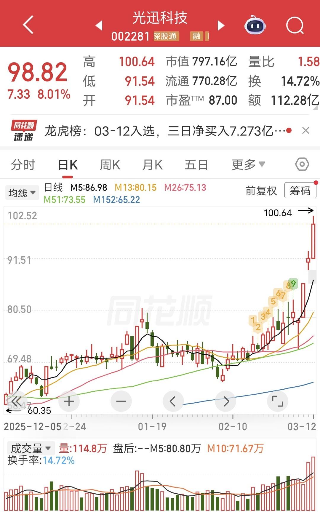 作手新一爆买5.2亿! 今天光迅科技涨停后炸板,未能封涨停。 盘后龙虎榜显示