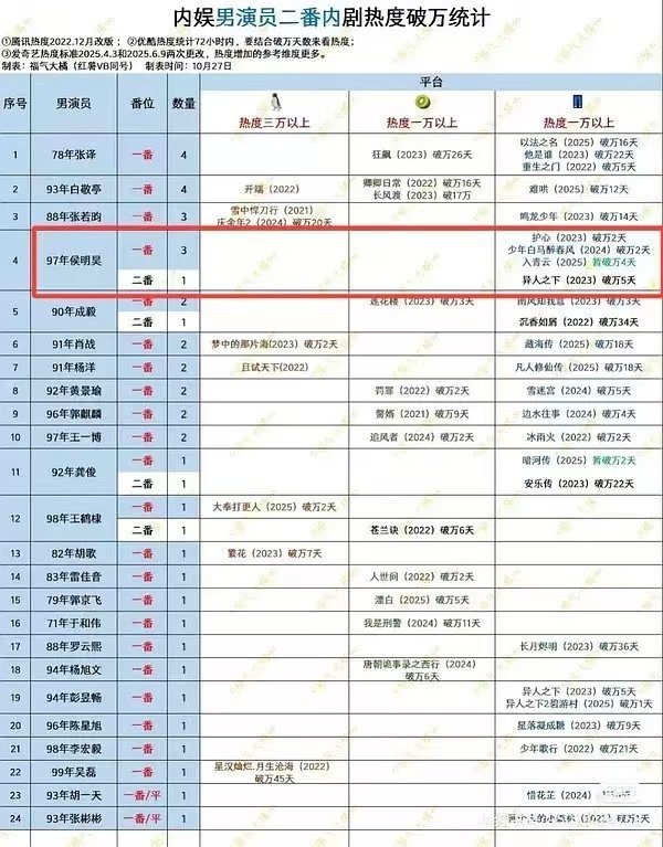 95生中侯明昊二番实绩第一☝️,好好磨练演技,估计等90老了,就是下一个顶流