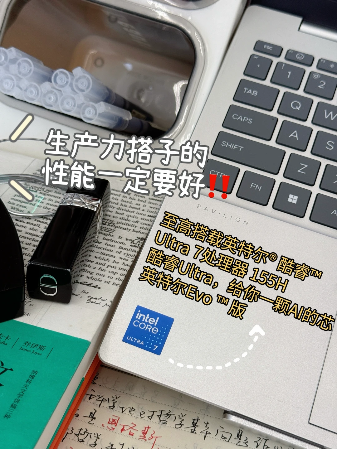 1.至高搭载英特尔® 酷睿™ Ultra 7处理器 155H,酷睿Ultra,给你一颗AI的芯!不光性能好,同时也能兼顾续航。不接电的情况下,我同时整理视频素材、听播客、写笔记多开任务也不卡,而且能保持差不多7小时的续航。