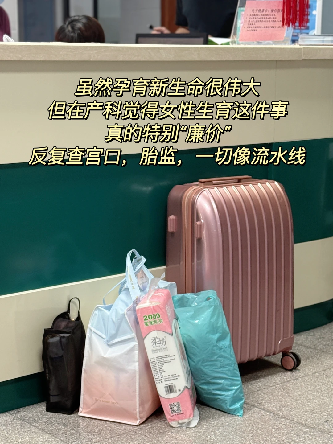 在颠瑜伽球的时候,看到陆陆续续来了很多待产妇,前台护士一直在做危险告知,要剖的要签剖腹产后各种风险书,要顺的也有很多风险和后遗症。然后签上名,盖上手指。有时候她们的老公在身边,有时候只有产妇一个人。