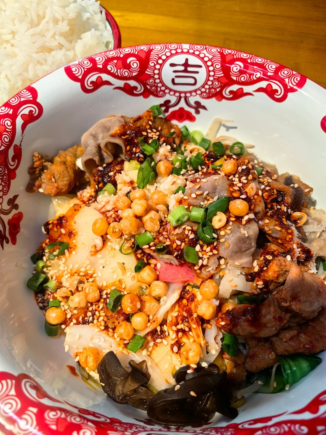 *在路上*冒菜,微微辣,想吃点菜叶叶...大刀饼,梅干菜肉的+酸笋肉的,肉饼+锅