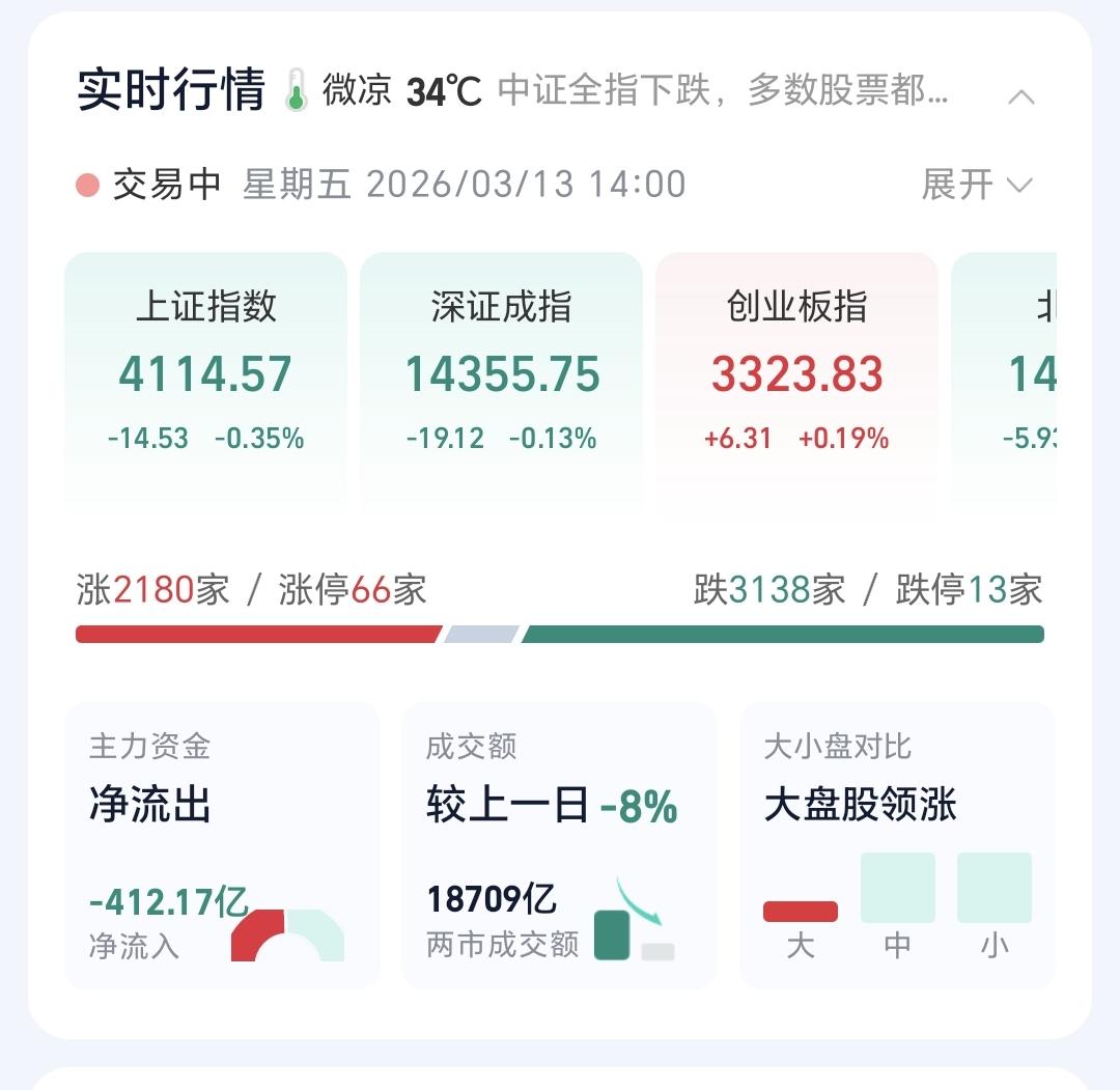 基金:下周会不会继续震荡调整 日本和韩国市场今天下跌,日本下跌了1.39%,韩国下跌了1.81%,下跌幅度都超过了1%以上。 香港市场今天是涨跌不一,恒生指数下跌了0.53%,国企指数上涨了0.07%,恒生科技指数下跌了0.31%,涨跌幅度都不大。 我们再来看一下盘面情况,现在上证指数和深成指已经翻绿,创业板指小涨,两市累计成交18709亿,相比于昨天同期缩量了8%,市场上涨2180家,下跌3138家,上涨家数少于下跌家数,涨停66家,跌停13家,主力资金净流出412亿。 整个市场上涨幅度最大的三个板块是:基建板块,储能板块,存储芯片板块,下跌幅度最大的三个板块是:商业航天板块,金融科技板块,军工板块。 Cpo板块日线级别处于上涨通道中,今天的下跌并没有改变这个板块日线级别的上涨趋势,短线持有的人可以继续持有,日线级别上涨通道的下轨线,是这个板块的持有条件。 Cpo板块周线级别也是处于上涨通道中,这个星期最高上涨到了周线级别上涨通道上轨线上,现在距离上涨通道的下轨线比较远,小幅度的下跌都影响不了这个板块周线级别的上涨趋势,长线持有的人可以继续持有,除非这个板块周线级别的上涨趋势被改变。 创新药板块日线级别处于短期下跌通道中,今天低开高走在下跌通道上轨线附近震荡,近期观察能不能上涨突破这个日线级别短期下跌通道的上轨线,也就是能不能改变日线级别短期的下跌趋势,只有改变了日线级别短期的下跌趋势,想进场的人才可以考虑要不要进场。 创新药板块周线级别处于上涨趋势破位中,本周都是在上涨通道的下方震荡,长线持有者想进场的人也是参考日线级别的走势,只有日线级别短期下跌趋势被改变了以后,才有可能重新走上上涨趋势。 人工智能板块日线级别处于短期下跌通道中,这一轮的下跌也是从下跌通道上轨线附近开始的,想进场的人也是要等待上涨突破这个下跌通道的上轨线,到时候再考虑要不要进场。 人工智能板块周线级别处于上涨通道中,但经过连续三个交易日的下跌,已经来到了上涨通道下轨线附近。近期观察会不会破位这个上涨通道的下轨线,如果实现有效破位,长线持有的人也需要注意风险。 电网设备板块日线级别处于上涨通道中,最近几个交易日的下跌已经来到了上涨通道下轨线附近。近期观察会不会继续下跌跌破这个上涨通道的下轨线,如果有效破位这个板块的日线级别上涨通道的下轨线,短线持有的人需要注意风险。 固态电池板块日线级别和周线级别都处于上涨通道中,两个级别的上涨趋势都保持的很好,短线持有的人和长线持有的人都可以继续持有,只要日线级别和周线级别的上涨趋势不被改变,短线持有的人和长线持有的都可以继续持有。 可控核聚变板块日线级别处于上涨通道中,但今天的下跌已经些许破位了日线级别上涨通道的下轨线,近期观察这个破位是不是有效破位,如果实现了有效破位,短线持有的人需要注意风险。 可控核聚变板块周线级别处于上涨通道中,距离上涨通道的下轨线比较远,小幅度的下跌都改变不了周线级别的上涨趋势,长线持有的人可以继续持有,除非跌破这个周线级别上涨通道的下轨线,才可以考虑要不要止盈做了观望。 稀土永磁板块今天下跌,现在已经来到了日线级别上涨通道下轨线附近,近期观察会不会有效破位日线级别上涨通道的下轨线,如果实现了有效破位,短线持有的人需要注意风险。 稀土永磁板块周线级别处于上涨通道中,距离周线级别上涨通道下轨线还有一段距离,在有效破位周线级别上涨通道下轨线之前,长线持有的人都可以继续持有。 今天主要观察收盘点位能不能收在4107点上方,如果说在4107点下方,震荡调整有延续的可能性,如果说在4107点上方,就还是保持在横盘震荡阶段,如果收盘点位在4080点下方,震荡调整的可能性就更大,从成交量的情况看,继续震荡调整的概率更大一些,震荡调整还没有结束,下周会继续震荡调整。 今天究竟应该怎么办?我会在评论区留言。 花1秒钟点赞,花30秒钟评论,就是对我最大的支持,谢谢大家的支持。