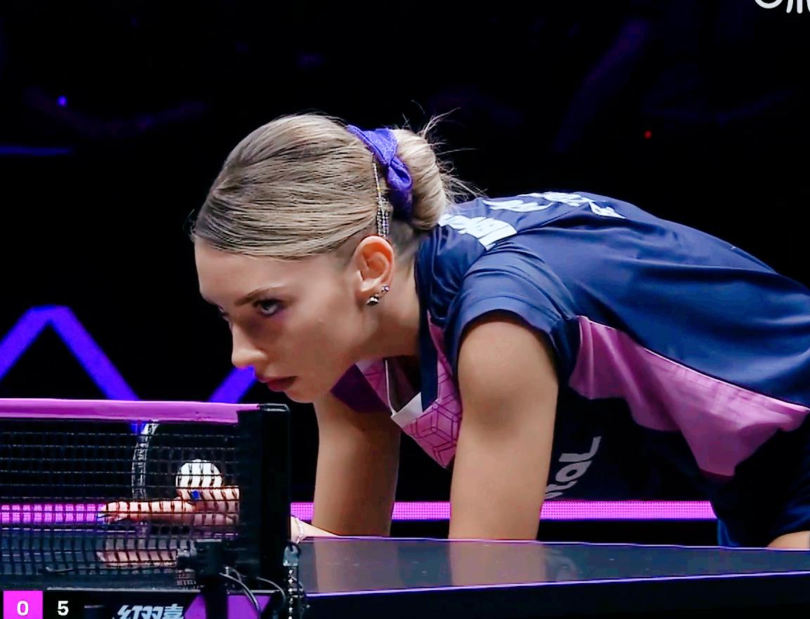 不得不说!陈熠这178的身高,太有压迫感了! 女乒里面, 除了大白鹅180, 第二身高就是陈熠了吧。 不过陈熠比大白鹅更有优势, 她的灵活性和速度, 都胜过大白鹅, 所以陈熠可能登顶! 第一局 陈熠单板质量非常高, 3:0开局, 8:2领先, 斯佐追到了4:8后, 一个擦网球, 陈熠差点脱拍。 斯佐追到了8:9, 陈熠顶住压力, 连赢2球, 11:9拿下。