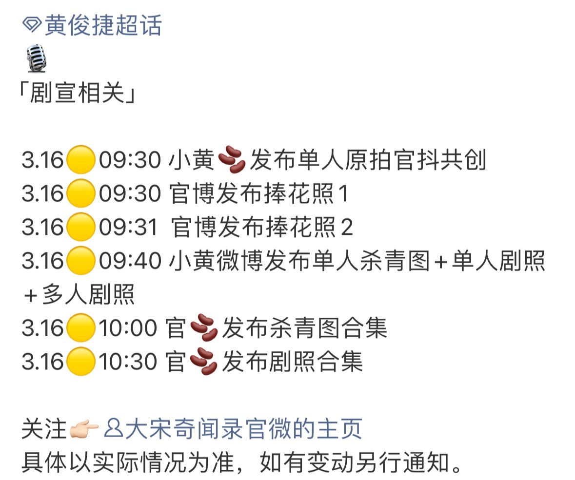 黄俊捷大宋奇闻录杀青啦,3.16发布杀青物料,恭喜小黄啦。